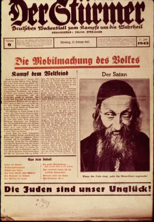 נא הביטי בשלוש הצילומים הבאים שהנושא שלהם הוא "היהודי". בראשונה הוא לא מזוהה , בשניה זו הרבנית חנה רובי מ"שובה ישראל". ובשלישית מישהו שמכונה בכיתוב שמעליו "השטן".