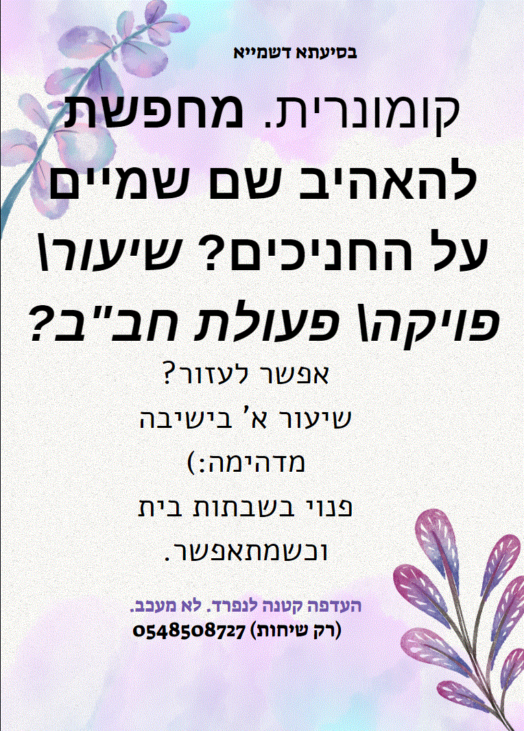 כבר הרבה זמן שלא הייתי פה ברוך ה', לא יודעת מה הלך כאן כשלא הייתי, אין לי גם כוח לברר, בכל מקרה מה שאני רוצה להגיד יהיה כנראה עדיין רלוונטי..