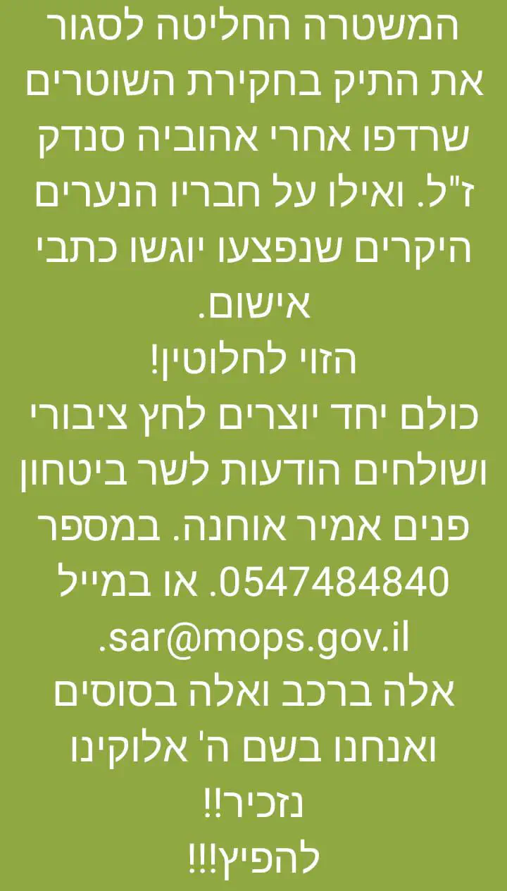 המשטרה שוטמת אותה כי היא שוטמת את היהודים הנאמנים.