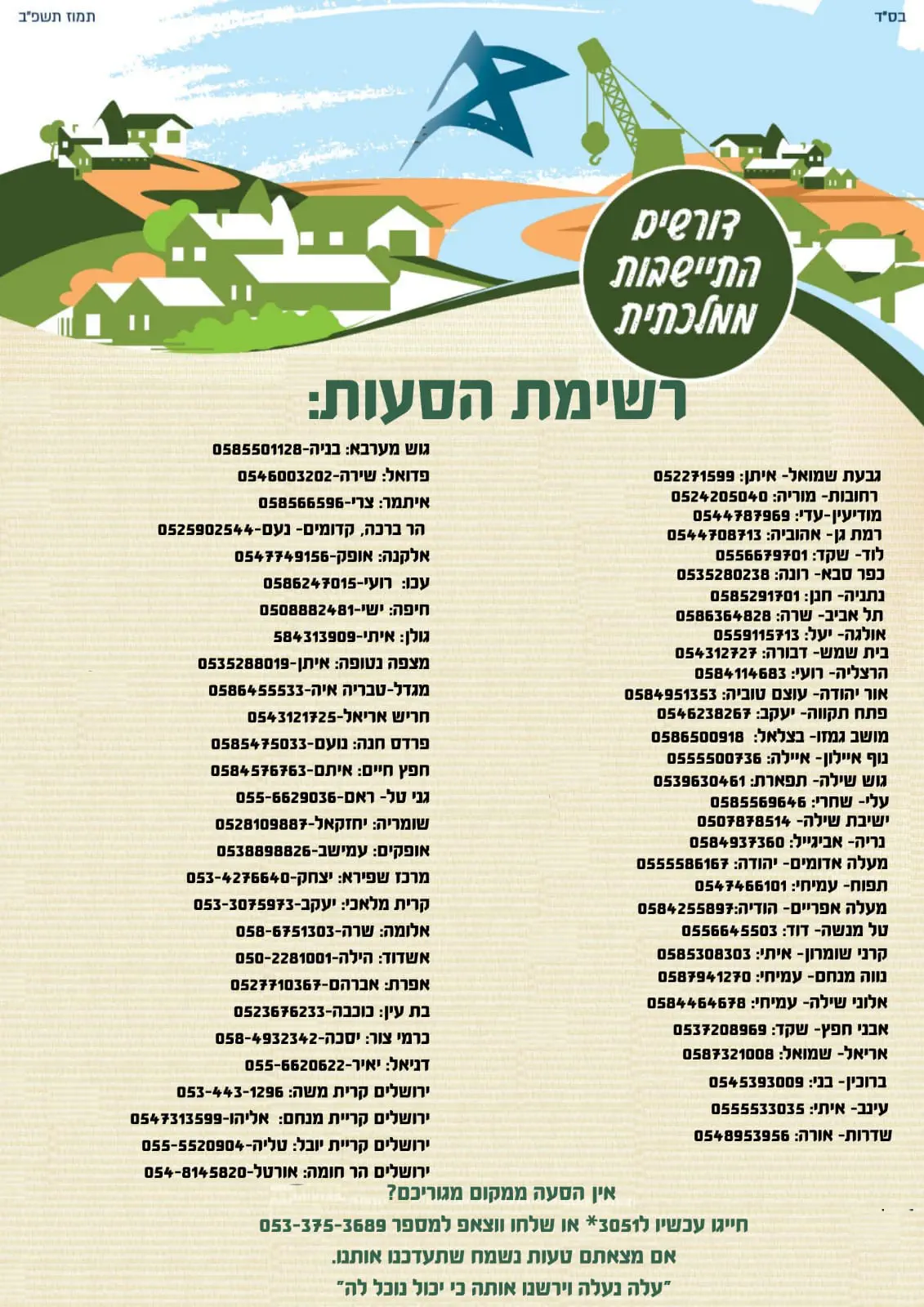 שימולבאלהנשמהאחרונהללכת למקימים ישובים חדשים אבל אני לא מוצאת על זה שום פרטים!! מישו יודע? או יכול לשלוח לי? תודה מראש