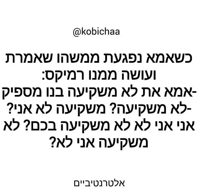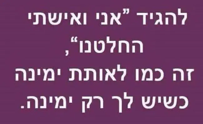 ואל תדברו איתנו על זה שגם לכם יש מגרעות, ושאי אפשר לקחת חצי חבילה..