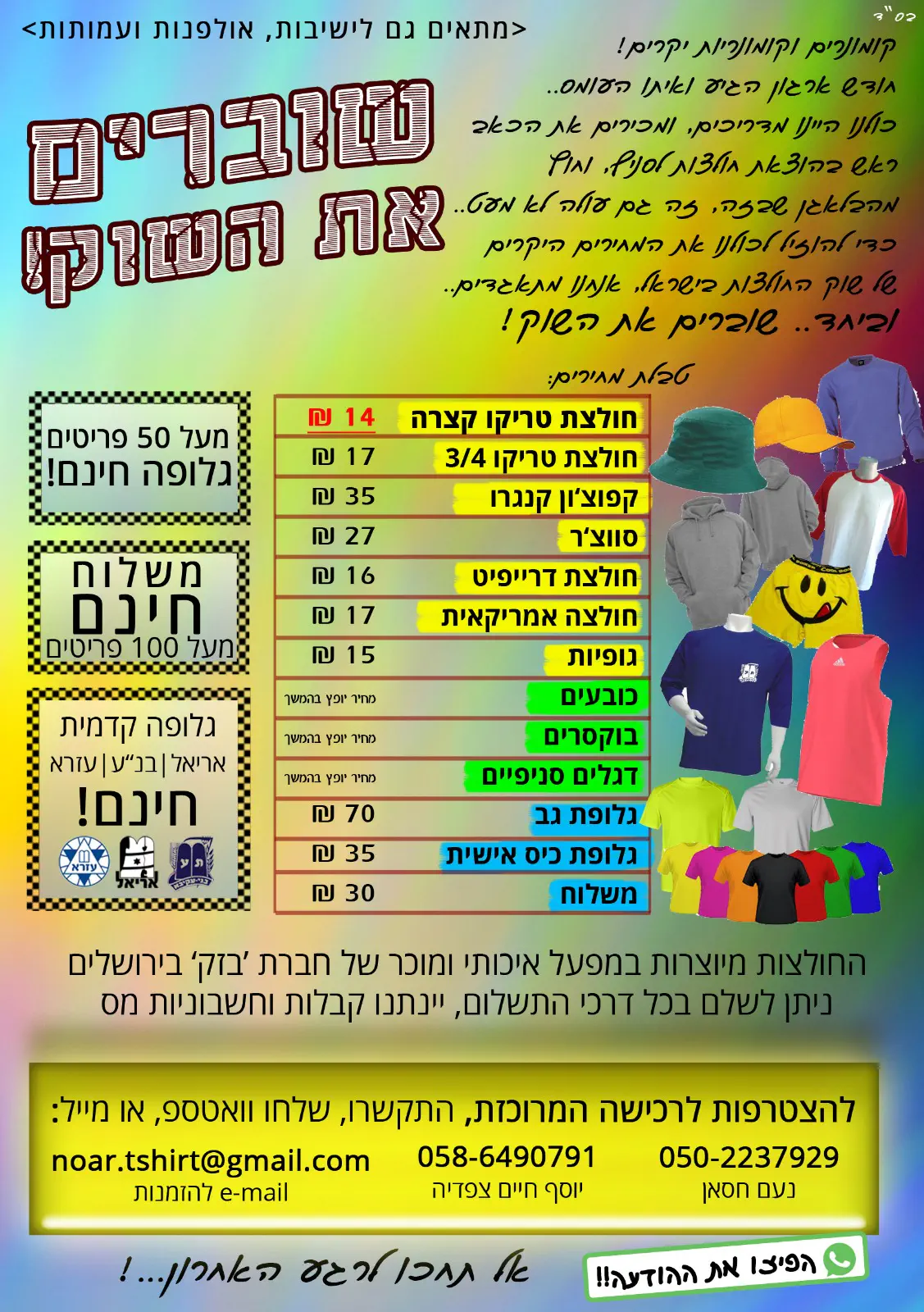 אני מחפשת להוציא חולצות לסניף שלי, שמעתי שיש רכישה מרוכזת משתלמת ממש שאפשר לקנות שם חולצות איכותיות ממש ממש בזול..