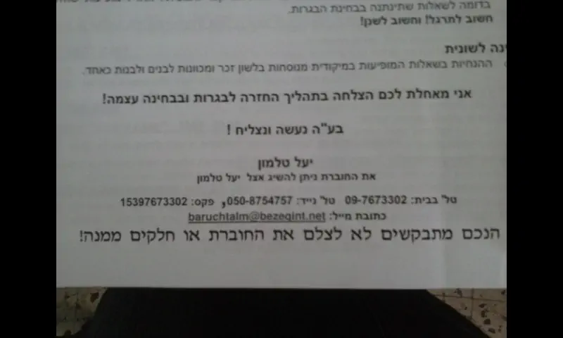 כמו שכולם יודעים יש ב"ה ביקוש גודל והולך לעבודה עברית. דיברתי עם החברה שמפעילים את מוקד עבודה עברית והם אמרו שהם יוצאים בקרוב בפרסום חדש על המוקד. שאלתי מה אפשר לעזור והם אמרו לשלוח להם כמה שיותר מיילים וטלפונים של אנשים שיכולים להפיץ את הפרסומת החדשה שלהם ברשימות תפוצה ובקבוצות. אני מבקשת מכל מי שרוצה לעזור בדבר הפשוט הזה שישלח לי לאישי את המייל/הטלפון שלו ואיזור המגורים ואני אעביר להם רשימה מסודרת עם המיילים והטלפונים שלכם.