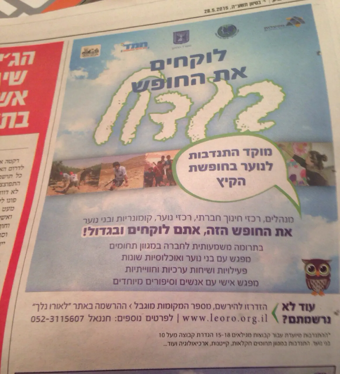 וכמובן, למצות את כל האפשרויות מול הישוב\ מועצה \ מתנס\ עירייה \ תנועה.