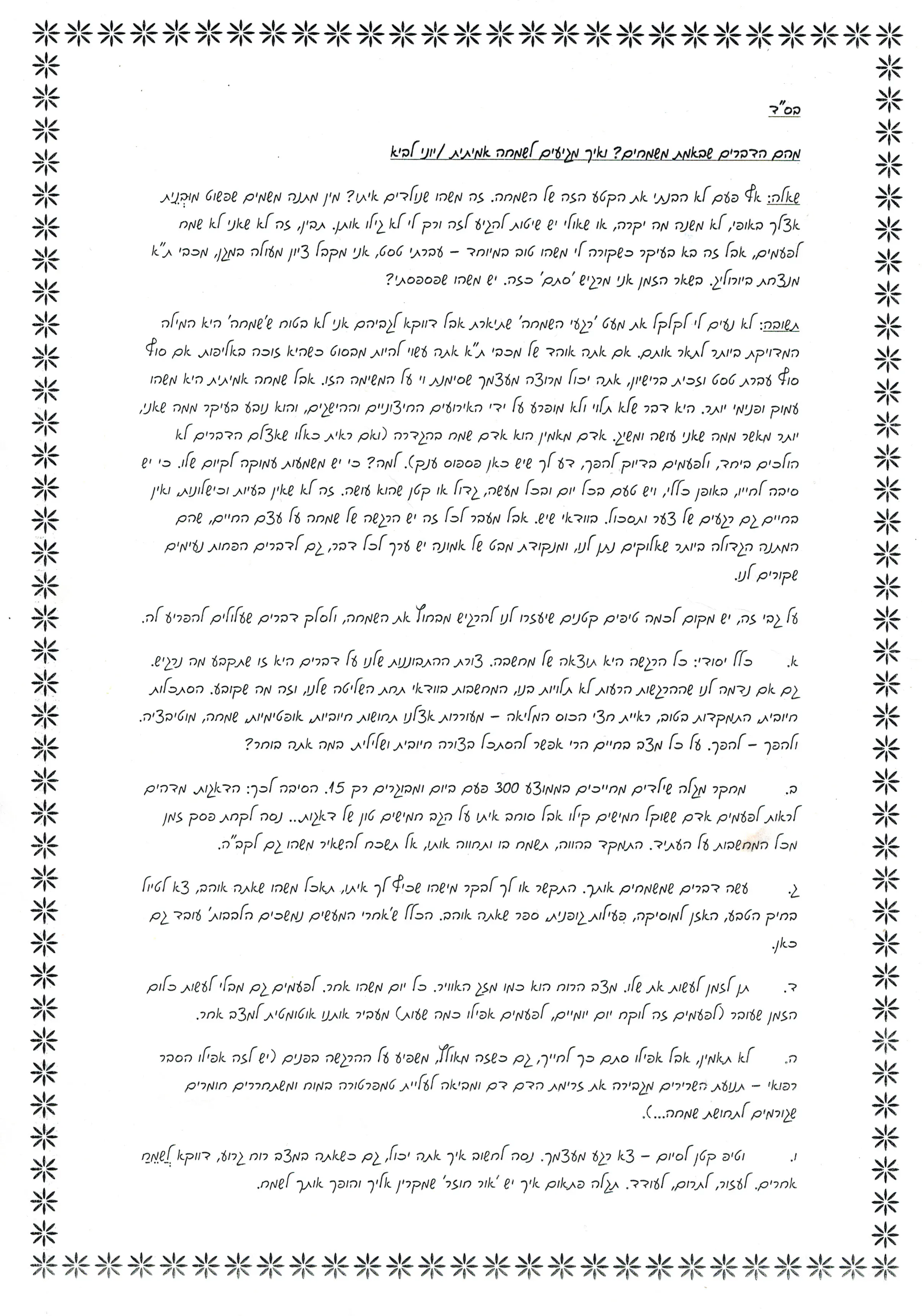 א. חשוב מהם הדברים שיגרמו לך לאושר.