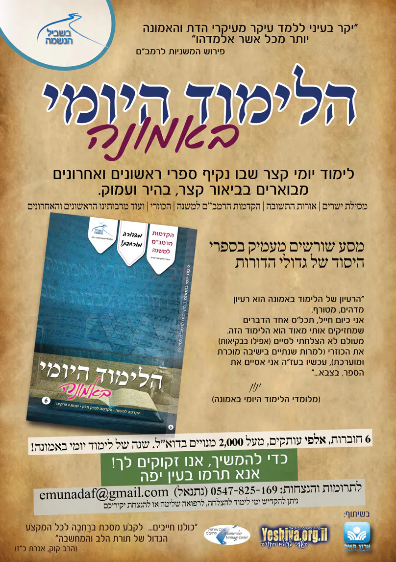 עמ"י זקוק לרכזים שיפיצו את החוברות הנפלאות של ה"לימוד יומי באמונה' במקום לימודיהם ומגוריהם..