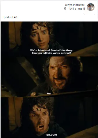 היום, ב 26/05/3018 לעידן השלישי - גנדלף שוהה במעון בג. פרודו נערך לעזיבת הפלך. 26/05/3019 לעידן השלישי ארוון ופמלייתה בלוריין. כרגיל גנוב מעמותת טולקין הישראלית