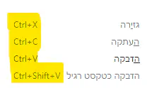 - העתקה הדבקה וגזירה. ללא נראה לי שצריך יותר מדי הסברים (תמיד אפשר להשתמש בקיצורים