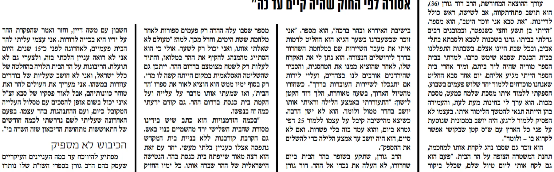 [ולגבי הסוגריים - אין קשר בין עמדת הרב גורן בעניין העליה להר לעמדתו בעניין הקרבת קרבנות בימינו ואכמ"ל].