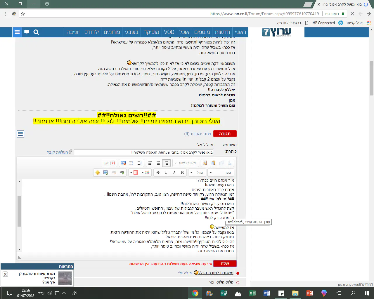 בואו נקבל על עצמנו, כל מי שה' יתברך גילגל שהוא יראה את ההודעה הזאת.