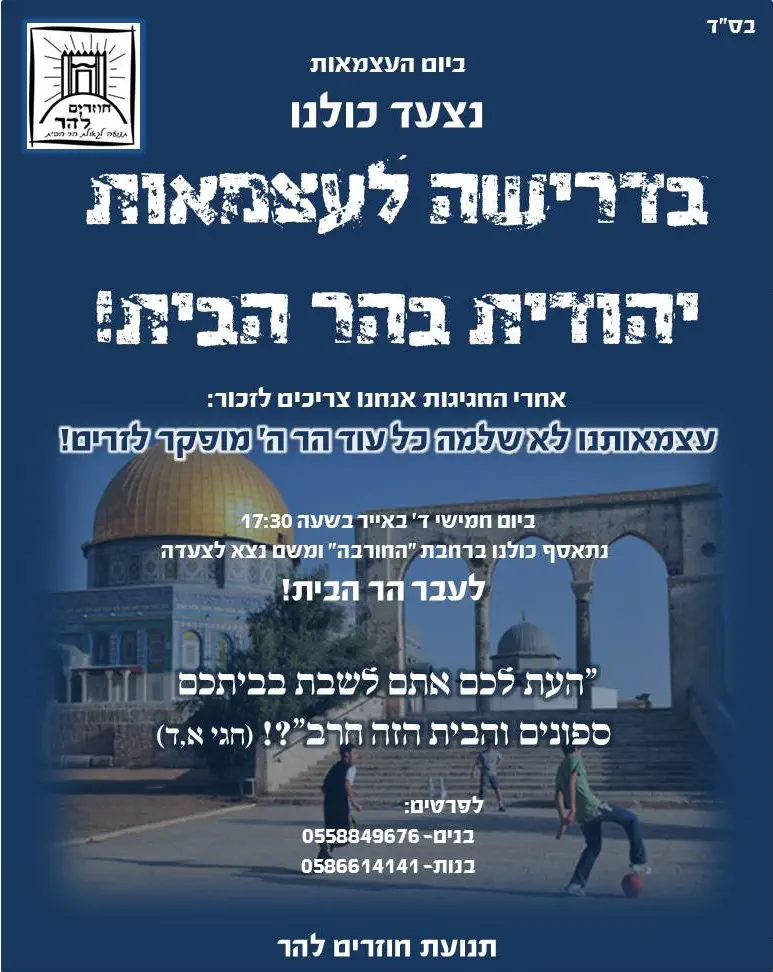 אך יתכן שכיום, בחגיגות 70 למדינה, גם הרצי"ה היה מורה שקומת יישוב הארץ ומלכות ישראל כבר מבוססת דיה, והגיע העת להציב חזון חדש ולעלות קומה חדשה, "קוממיות, קומה אחר קומה". וכעת כאשר עשרות אלפי יהודים מתעוררים לדרוש לציון ולעלות להר בית ה' בקדושה ובטהרה, והמודעות לחשיבות העליה להר הבית כבר נוכחת בשיח הציבורי ואף בקרב חברי כנסת רבים זה שנים, נראה שהלבבות כבר כשירים להמשיך ולהתקדם הלאה בתהליכי הגאולה.