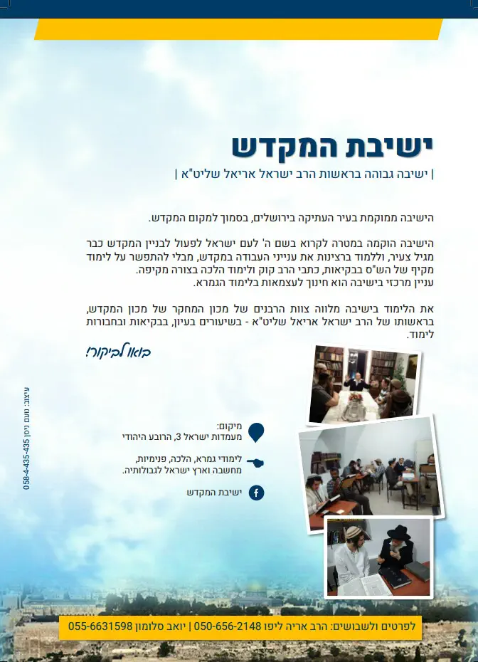 מצטרפים לישיבת המקדש, לוקחים חלק מעשי בגאולה!יהדות=דרך חיים