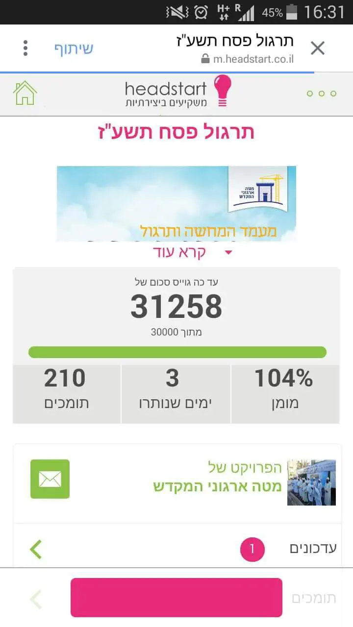 ב"ה ההדסטארט הגיע לסכום!חוזרים להר!