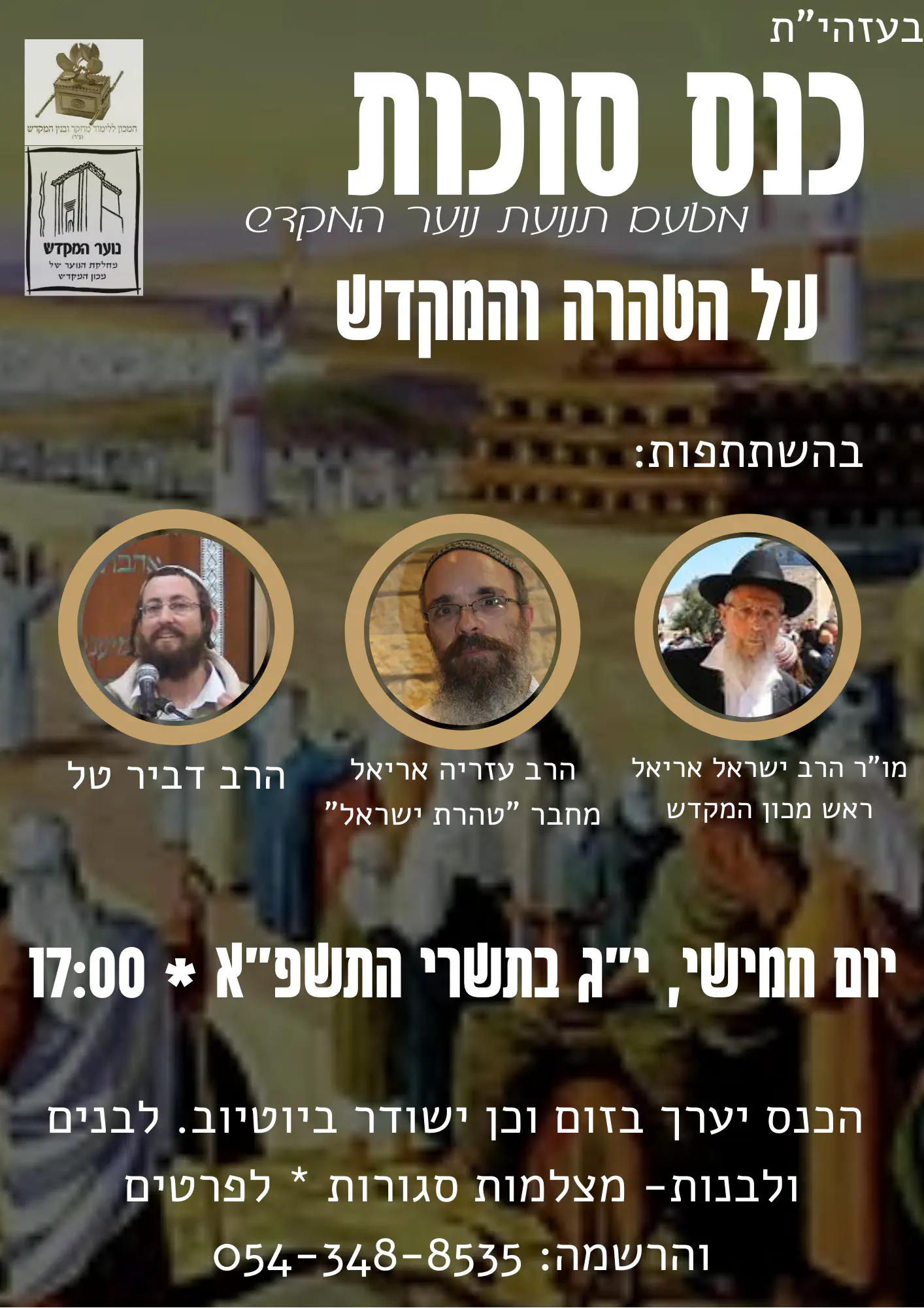 כחלק מהתוכנית יהיו שיעורים, חברותות, פעולות למען המקדש ועוד.