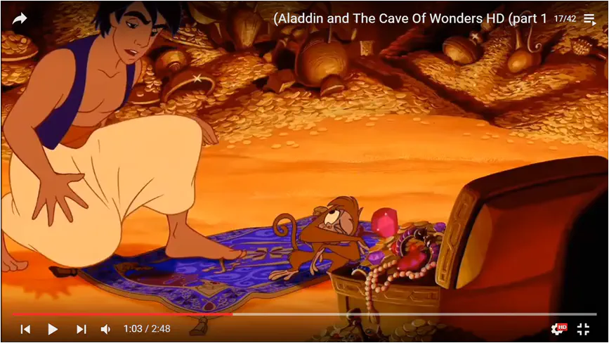 כאשר אלדין נכנס למערת הקסמים, נאסר עליו לגעת בדבר מן האוצר הקדום. ממש הקדש.