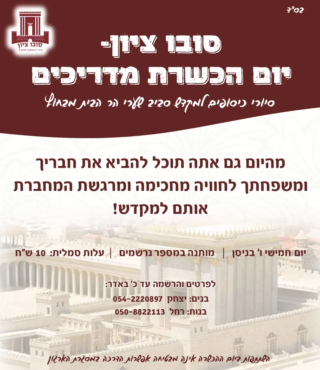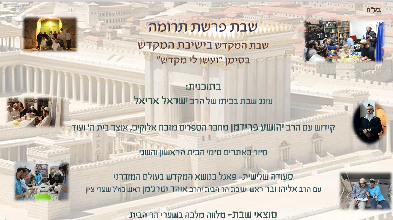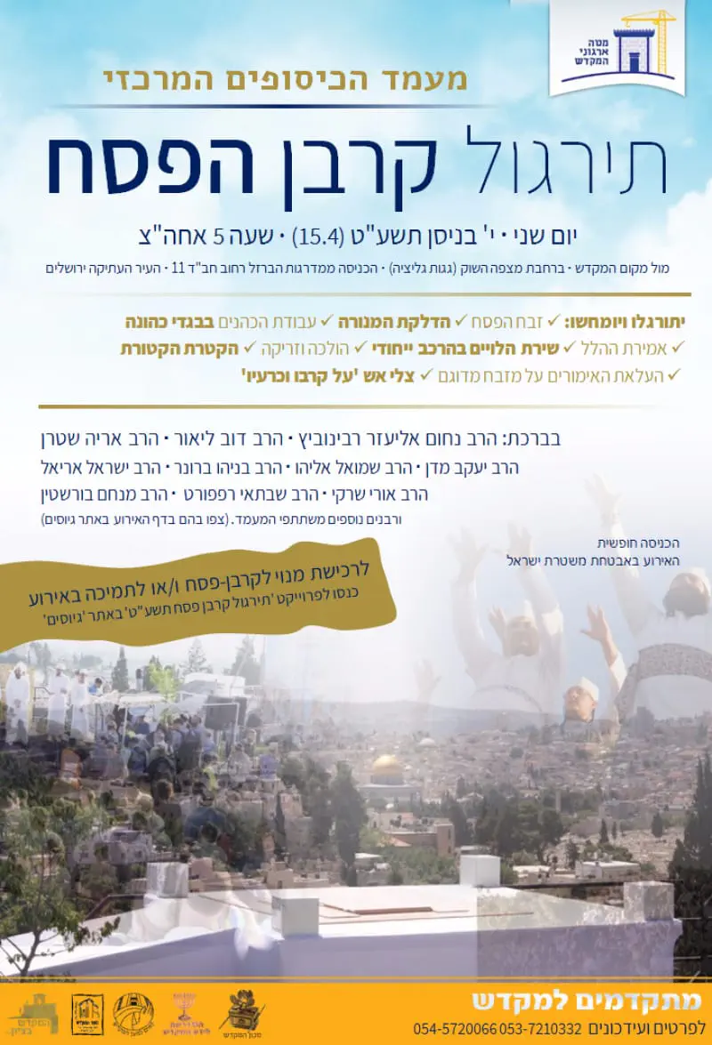 היום (חמישי) בשעה חמש וחצי במכון המקדש לפני הסיבו"ש החודשי