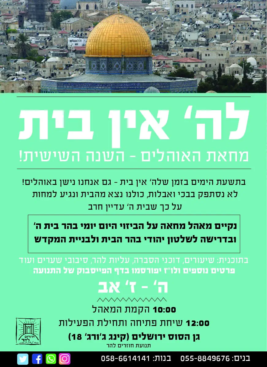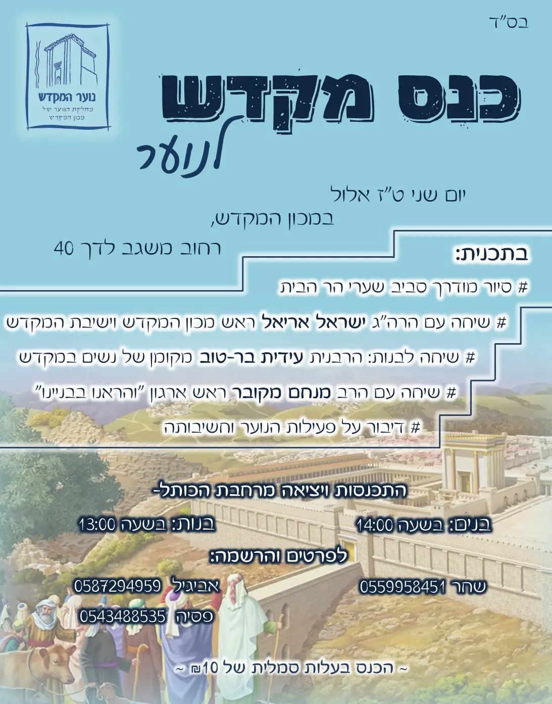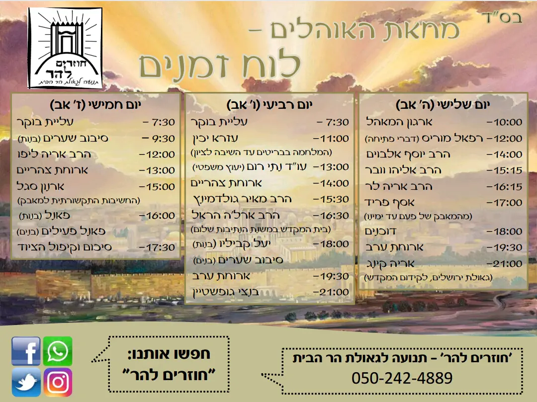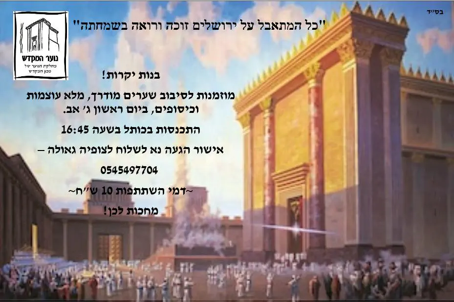 יום שני, טז אלול, במכון המקדש- רחוב משגב לדך 40