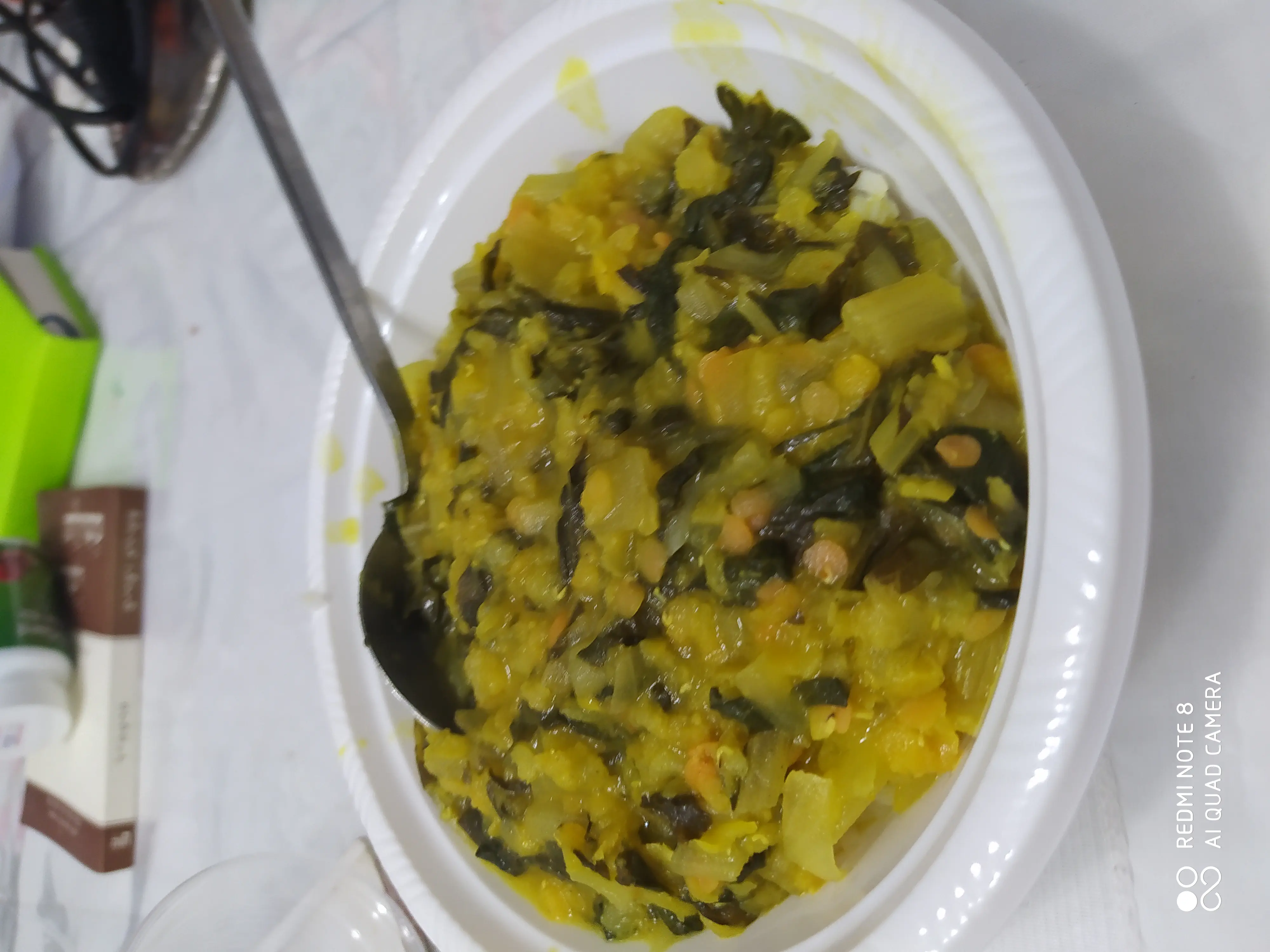 בצבע אחיד של חום - חום כהה (לפני זה עוד ניכר שהגזר כתום, תפוח האדמה צהוב וכן הלאה).