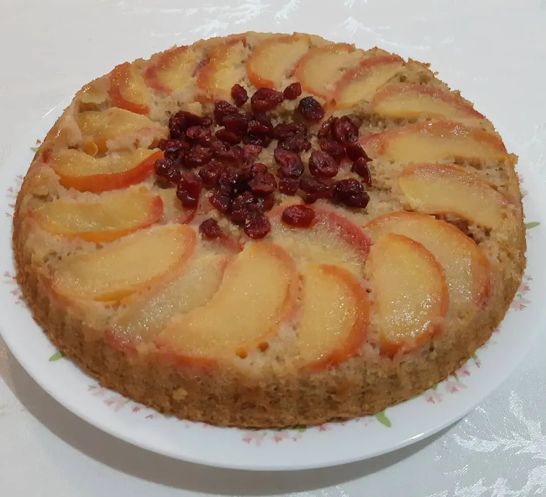 הכנתי בטעם קוקוס (קמח כוסמין מלא), אפיתי בפיירקס עגול של פאי ולפני ששפכתי את הבלילה סידרתי יפה חצאי פרוסות של שזיפים. אחרי שהעוגה התקררה הפכתי אותה על צלחת וגיליתי שהעיגול הפנימי של הפרי נעלם אז פיזרתי חמוציות סתם ככה ליופי.