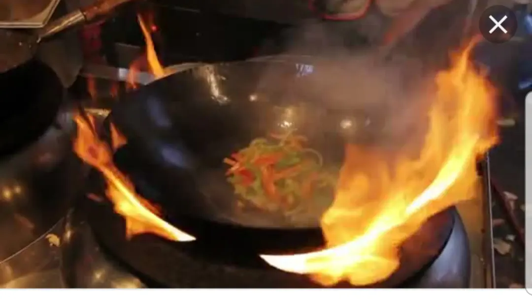 שמחבת ווק צריך אש חזקה שתעטוף אותו מכל צדדיו