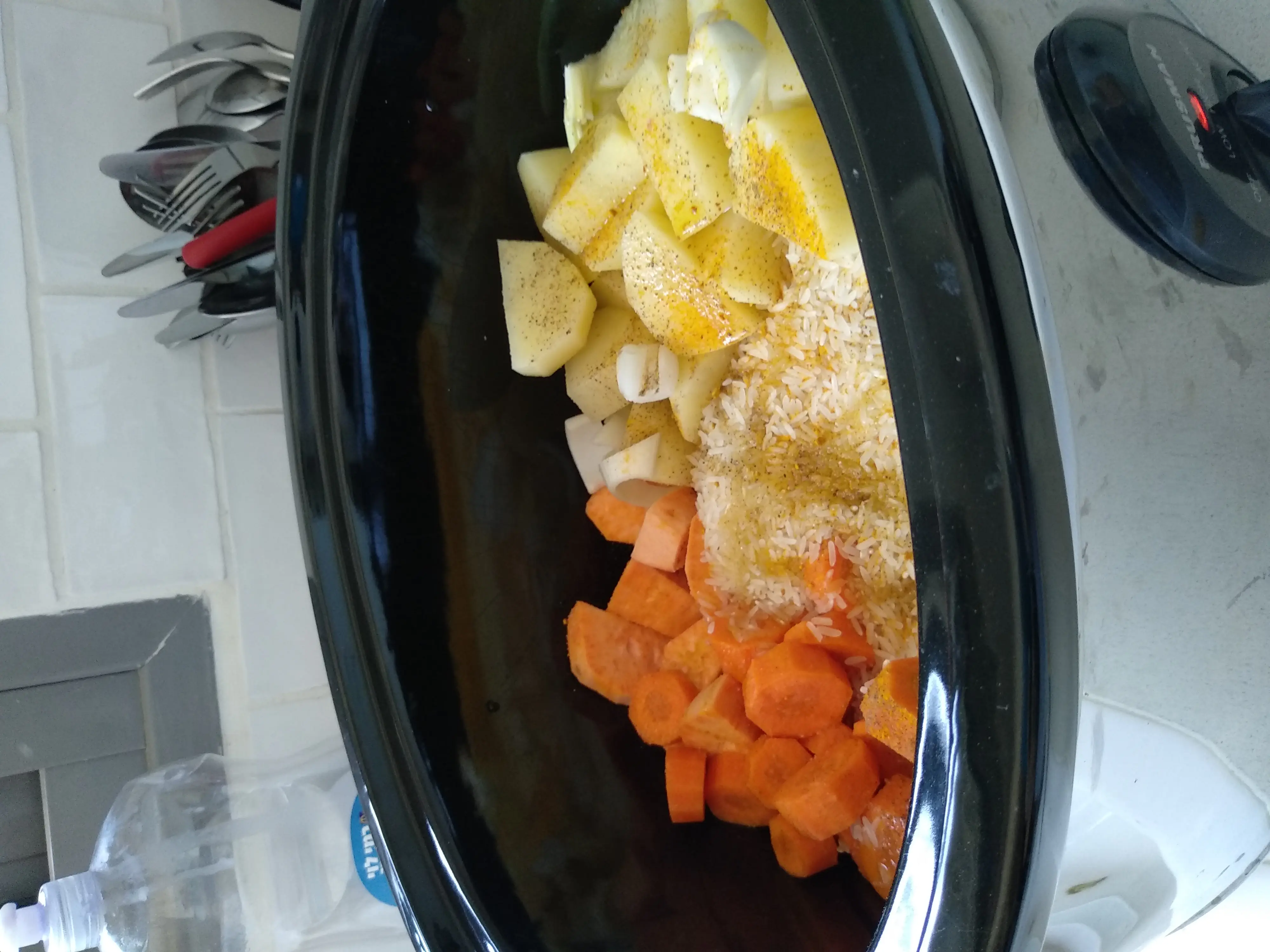 2 כוסות קטנות של אורז+5 מים בערך (לא שמתי עוף הפעם)חילזון 123