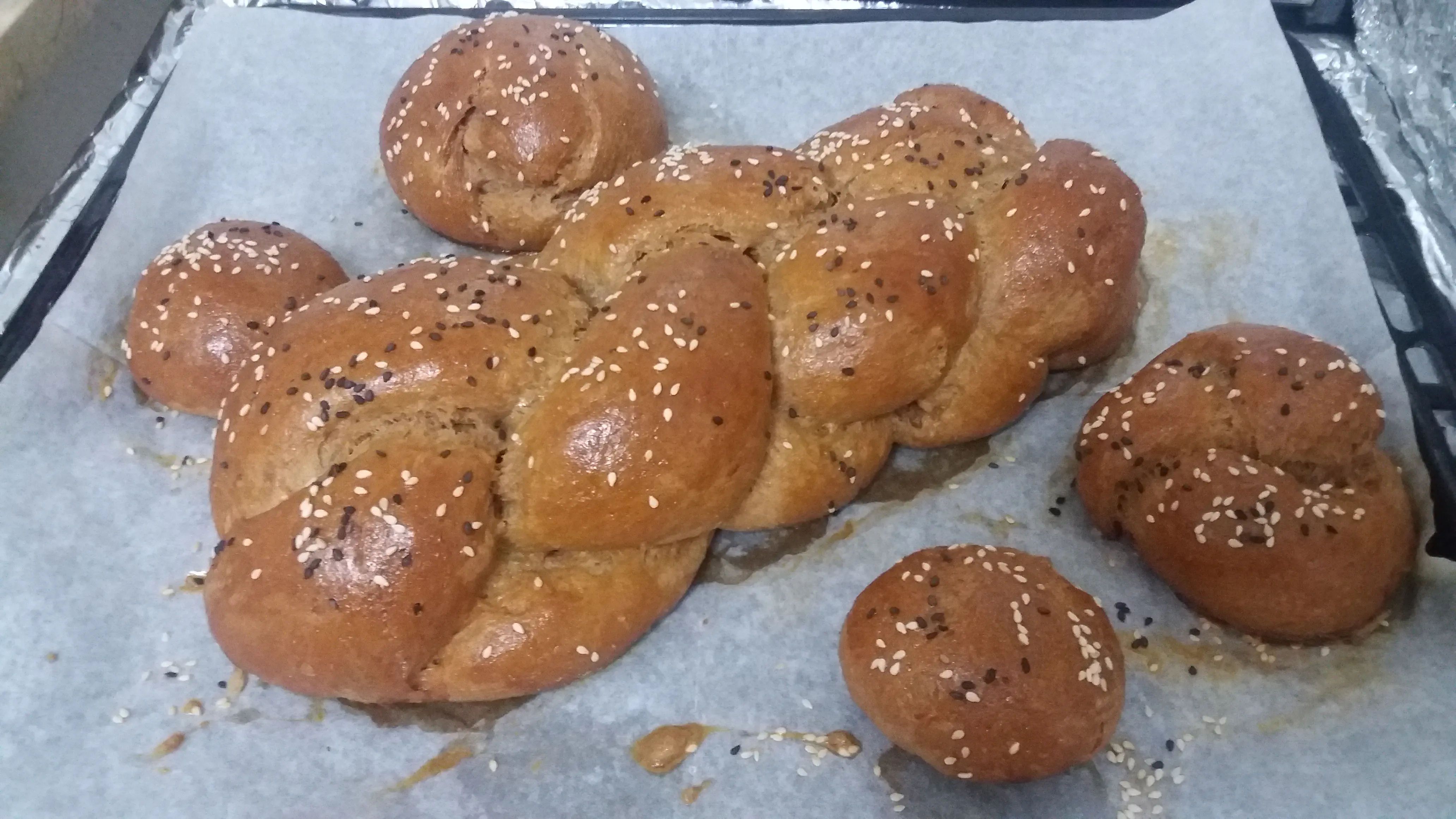 התפחה ראשונה עד שהבצק מכפיל את עצמו, קולעת, עוד התפחה קצרה, מורחת בביצה ושומשום