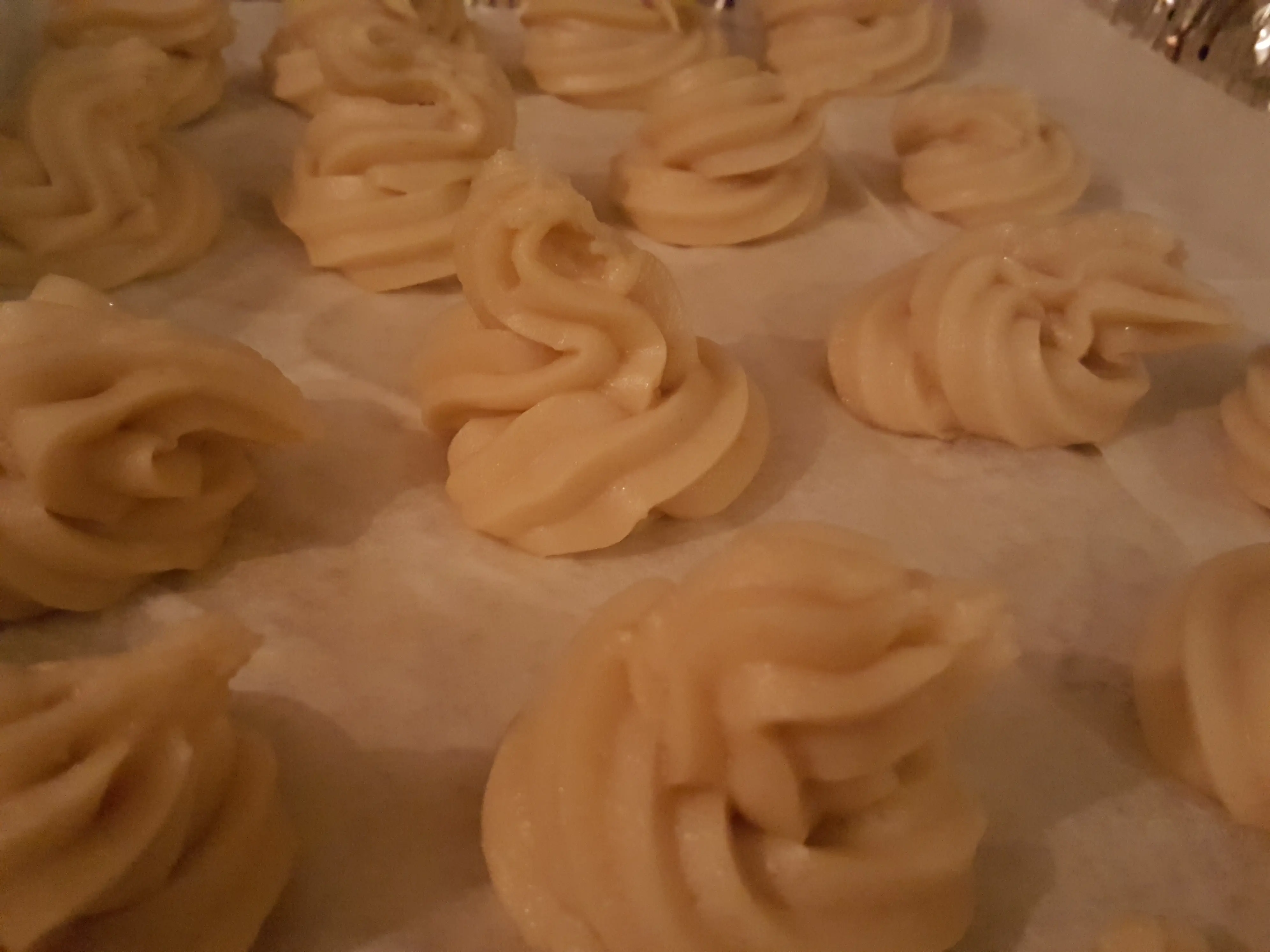 להכניס לשקית זילוף לזלף על נייר האפיה(טיפ נהדר כדי שנייר האפיה לא יזוז להדביק את הנייר עם עיסת הפחזניה לתבנית) לאפות בתנור על טורבו 160 מעלות לא לפתוח את התנור עד שמשחים!!!!!