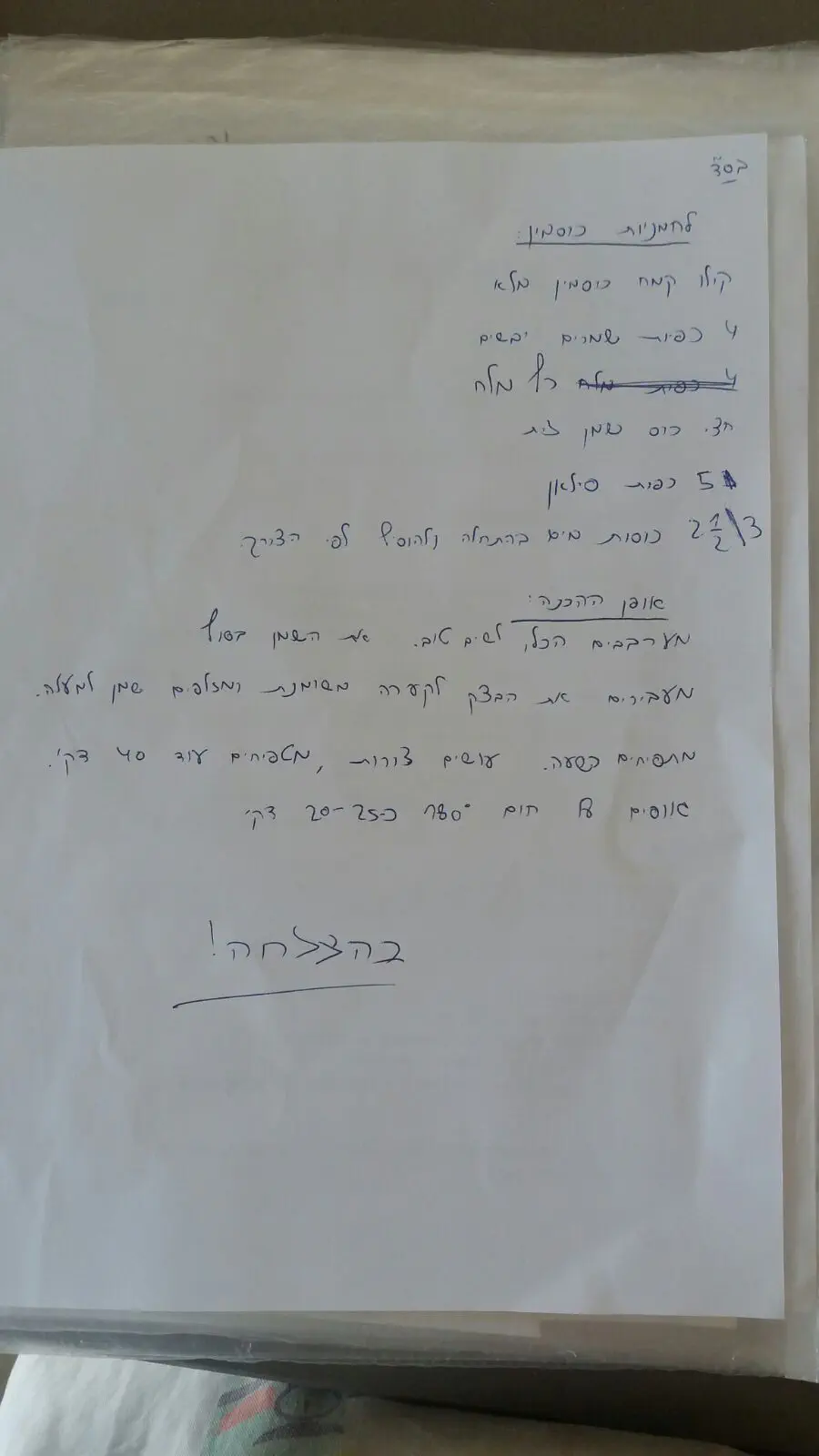 יש לי מתכון בבית, אוכל לכתוב בצהריים אם עוזריעל מהדרום