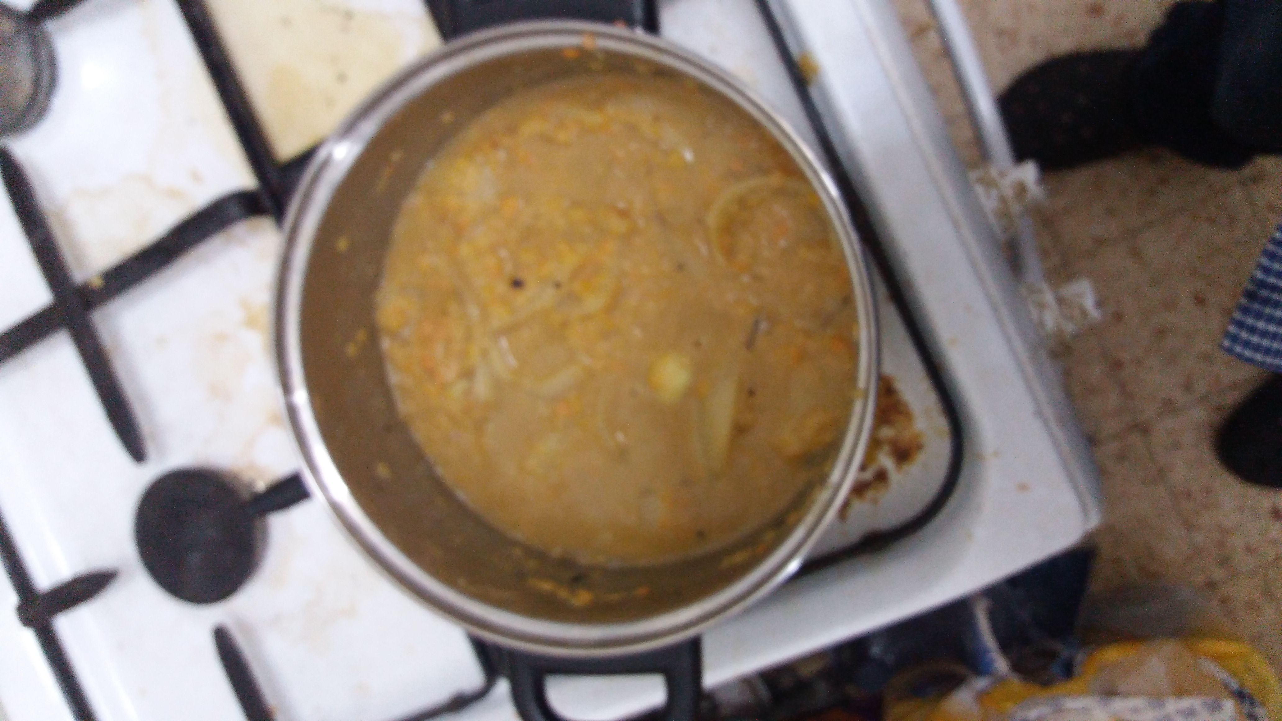 רק רביכה (מרגרינה וקמח) ואז עדשים, מים, פלפל שחור ומלח.