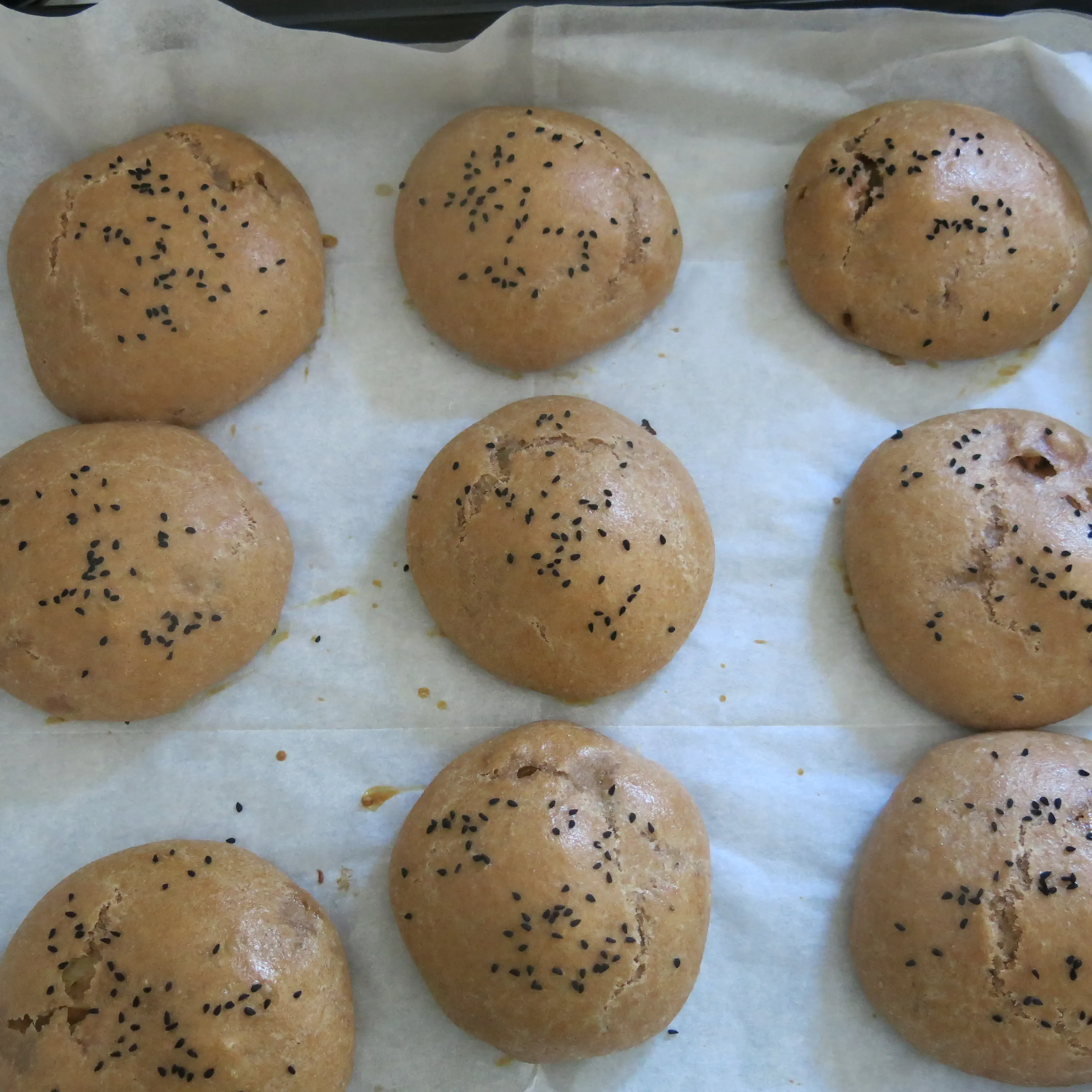 הפעם מילאתי חלק מהלחמניות גם בבצל מטוגן עם גרגירי חומוס טחונים עם טחינה- יצא טעים!