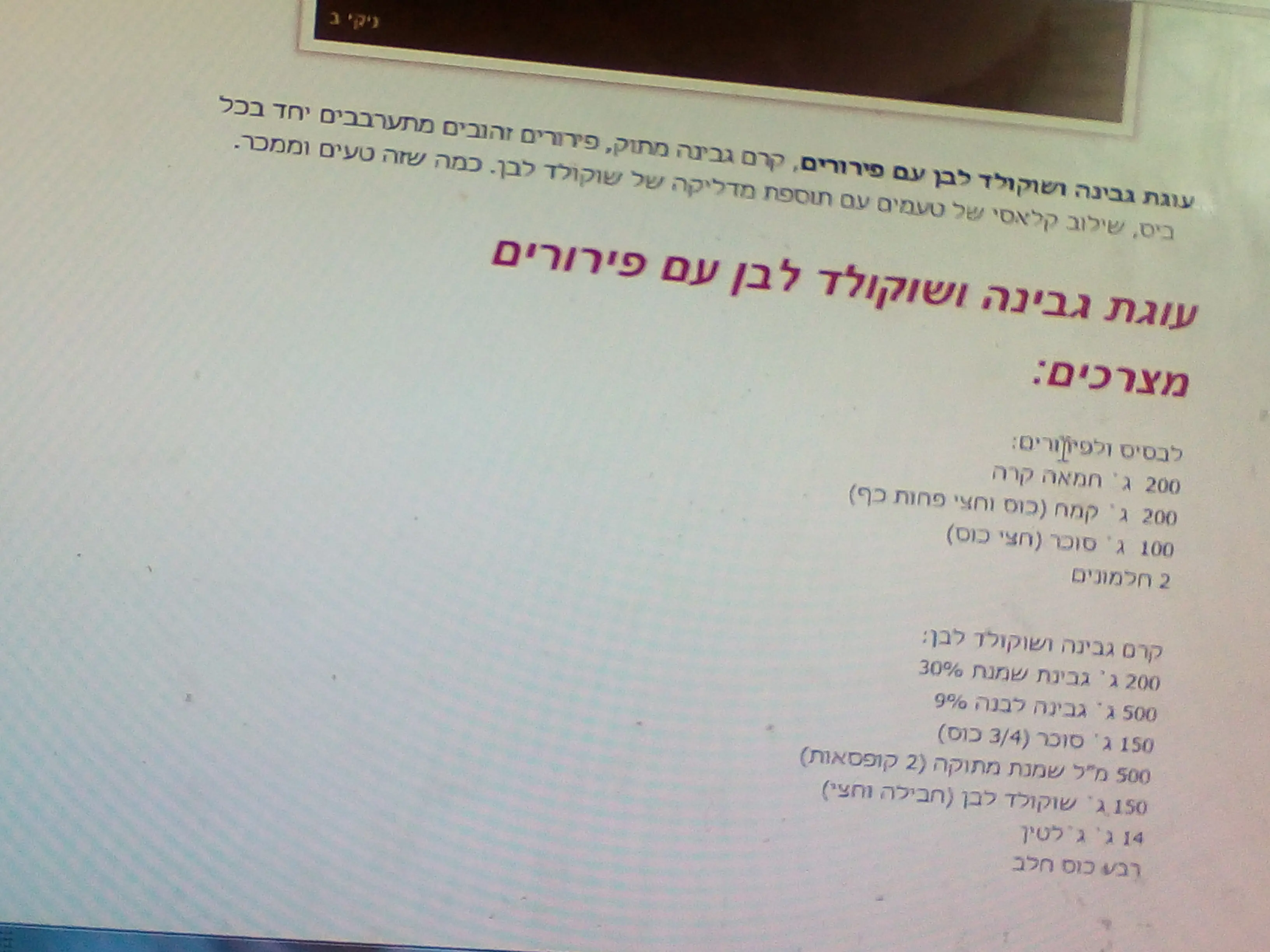 גבינה צפתית (גם של 5% טובה)שוקולד לבןאחרונה