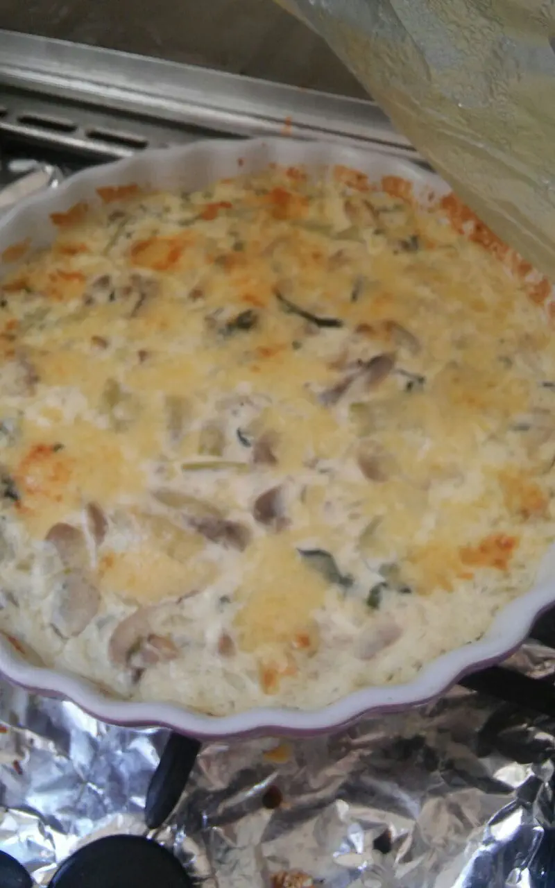 המילוי שלך נשמע טוב. לדעתי כדאי לאפות קודם את הקישואים בתנור ולטגן את הבצל ולא לשים נא. אח"כ תסדרי אותם יפה בתבנית על הבצק ותשפכי את הרויאל (תערובת השמנת, ביצים ותבלינים)
