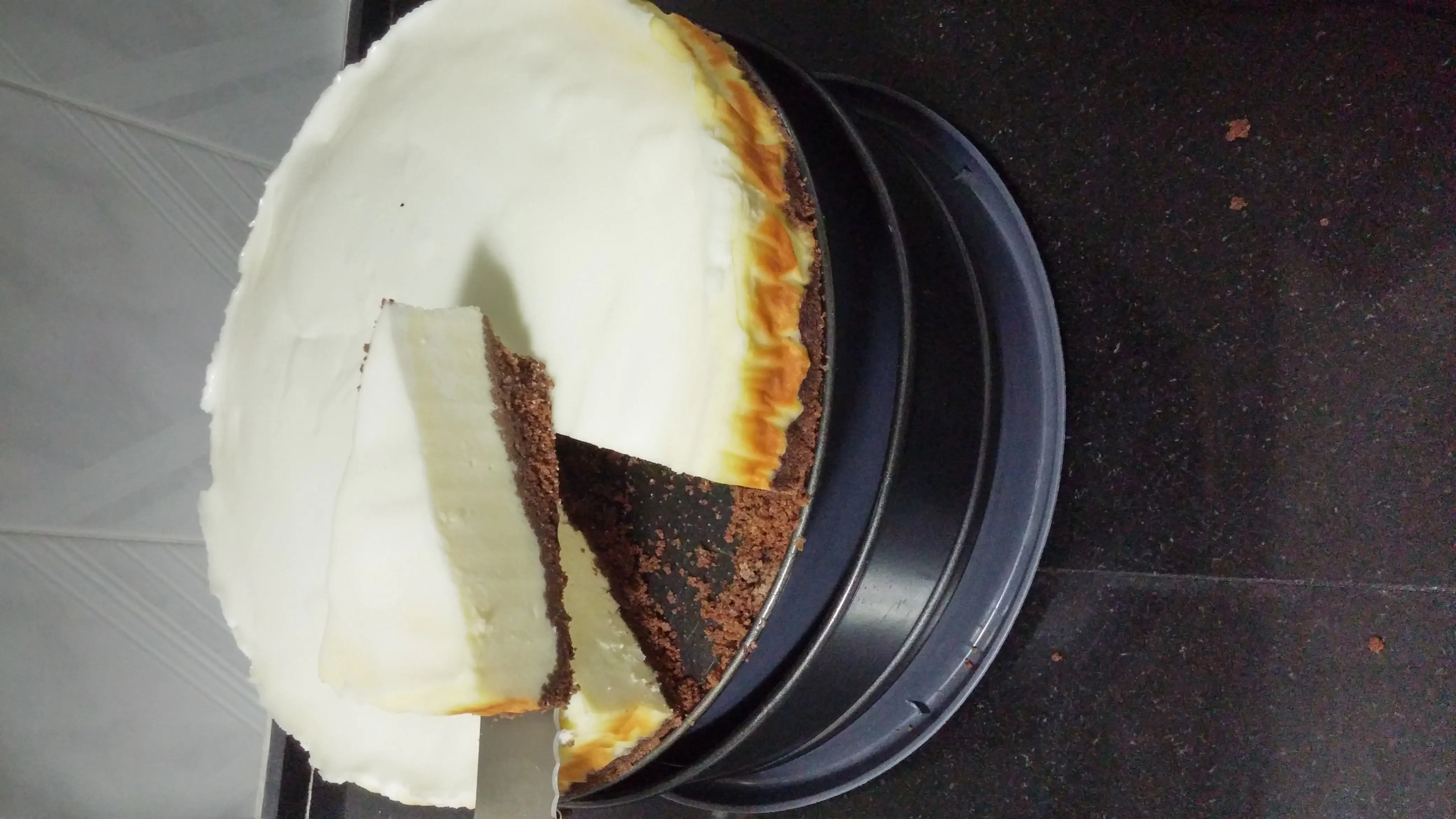 להפריד את העוגה מהדפנות עם סכין, זה מונע ממנה לצנוח..