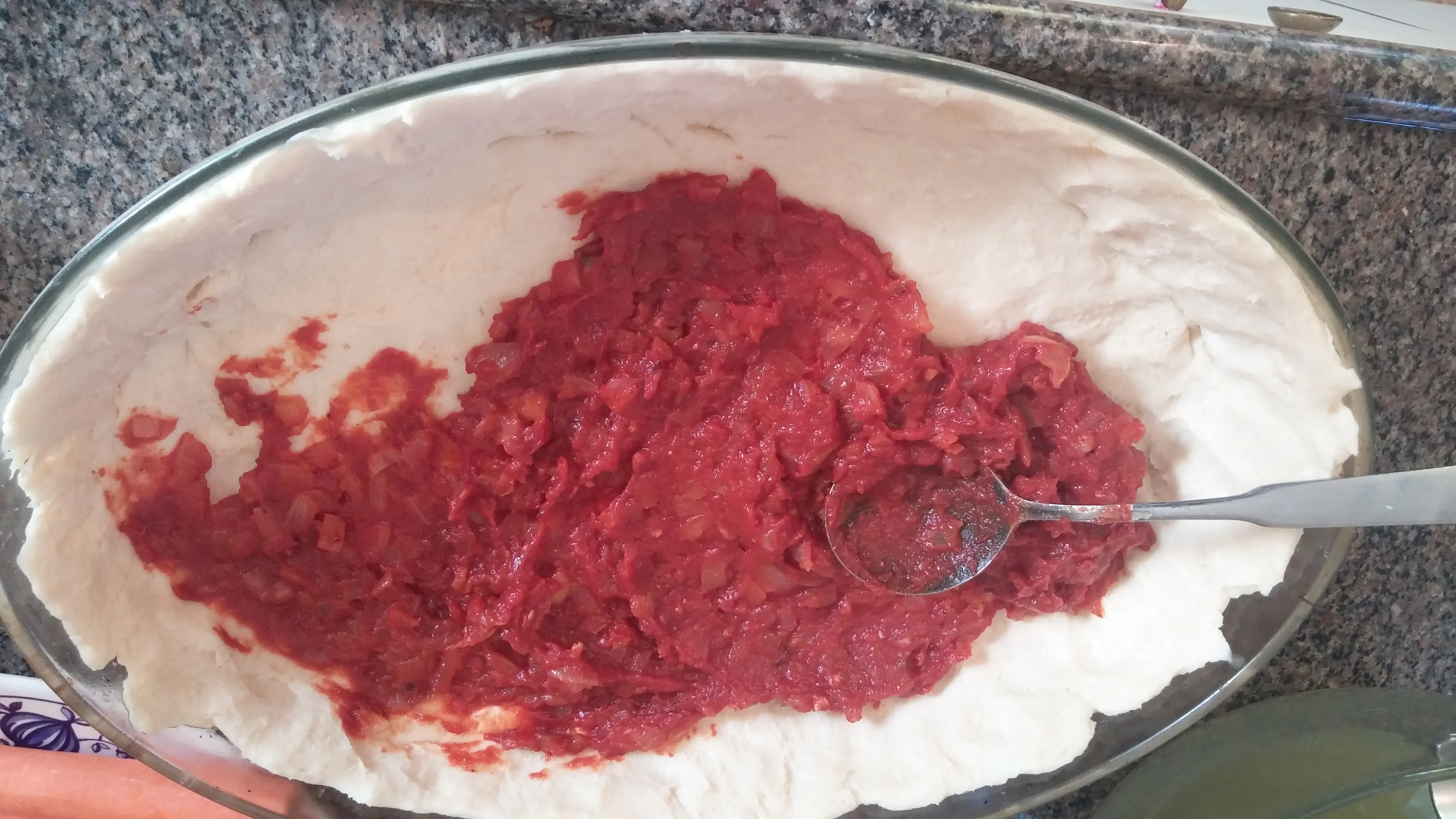 לשפוך את המלית אל הבצק ולפזר בצורה אחידה.