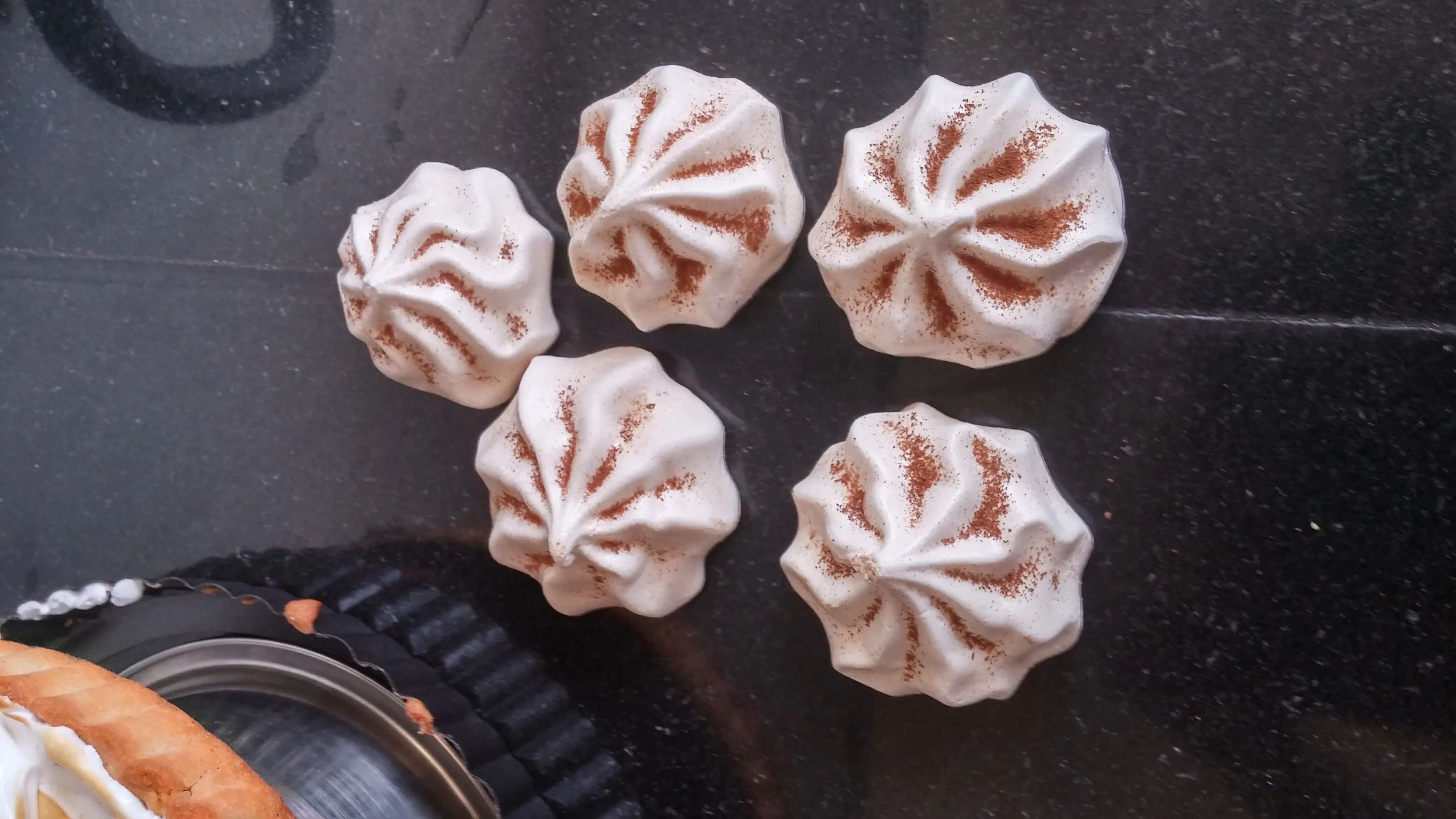 מקציפים חלבונים בקערה גדולה. כאשר מתחיל להיווצר קצף מוסיפים את הסוכר ב4-5 פעמים וממשיכים להקציף עד לקבלת קצף גמיש.