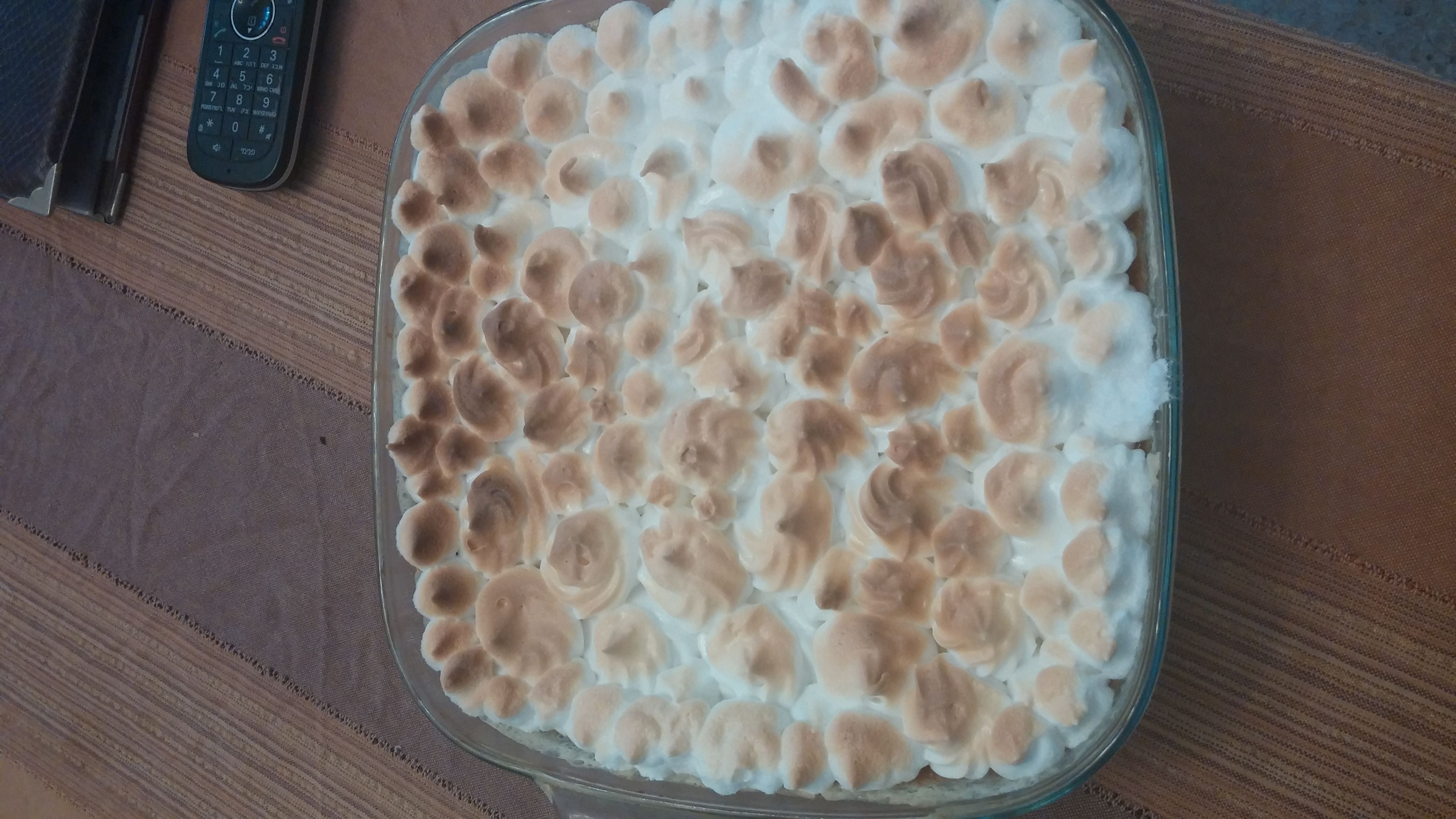 מעל העוגה אפשר לשים קצפת מריצ' (אני לא אוכלת חלב, אבל אפשר גם משמנת מתוקה). אני כשבא לי לפנק את המשפוחה אז אני ושה בצק רשמלו ושמה מעל...
