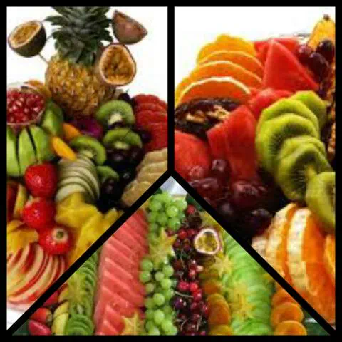 1. חסה, כרוב, חתיכות של קיווי/אפרסמון/מנגו/תפוז תלוי בעונה ובטעם, להוסיף חמוציות וגפרורי שקדים קלויים לתבל בשמן, חומץ, סוכר ומעט פלפל ומלח. (שמן קצת יותר, סוכר וחומץ קצת פחות)