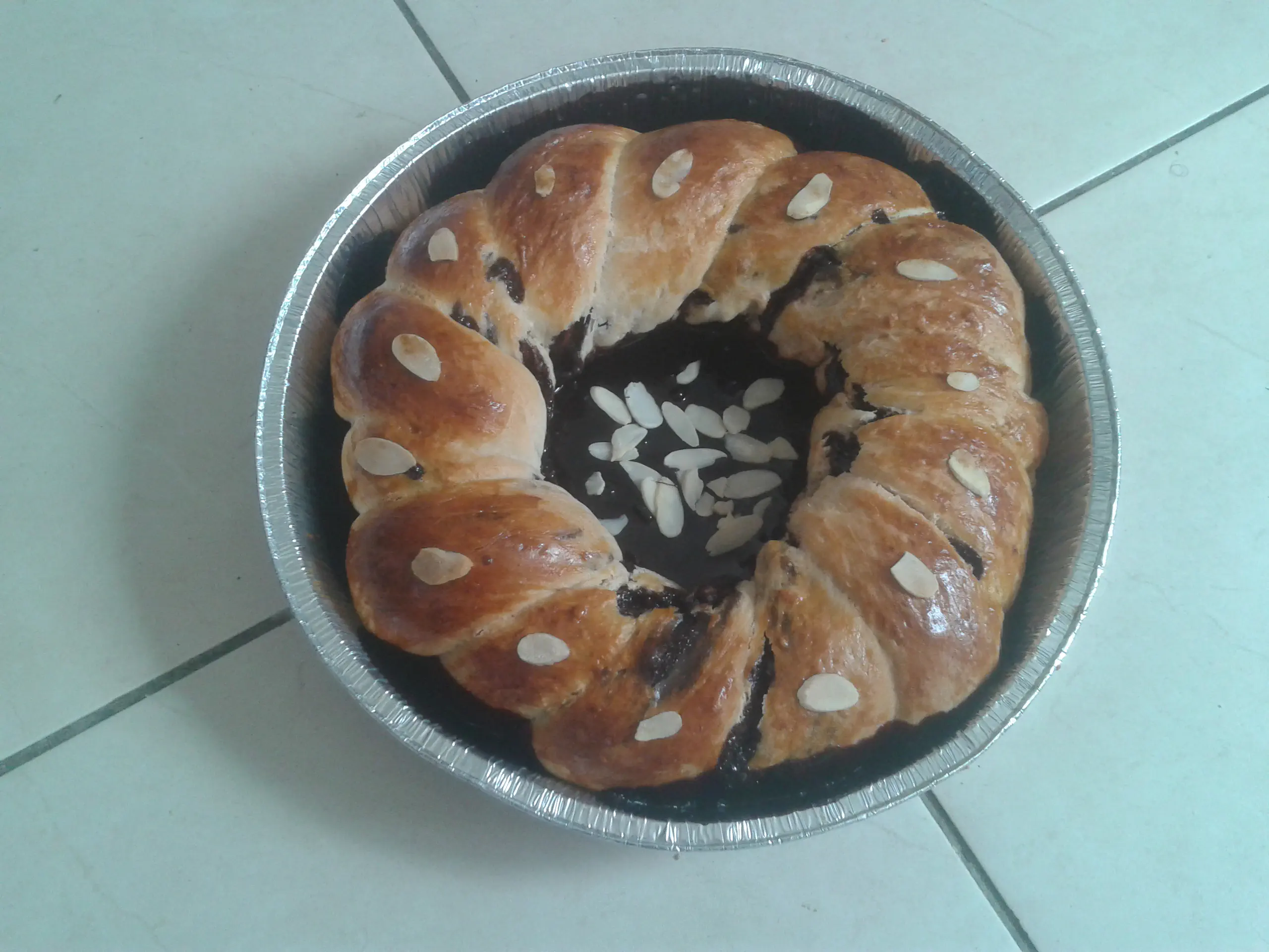 עוגת שמרים במלית שוקולד+אגוזים+שקדים ![]()