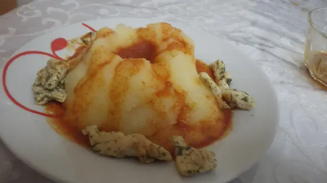ומעל עוד רוטב שקשוקה עם החלבון שערבבנו. כמובן שמי שכן אוהב את החלבון יכול לשים את הביצה כולה בתוך הפלפל.