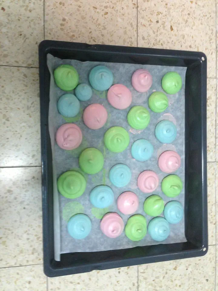 בעזרת מזרק גדול לקישוט עוגות או בעזרת שתי כפות יוצרים נשיקות מהפירה (כמו נשיקות של קצף ביצים). רגילות או בצורה של קונכיות אם רוצים למלא