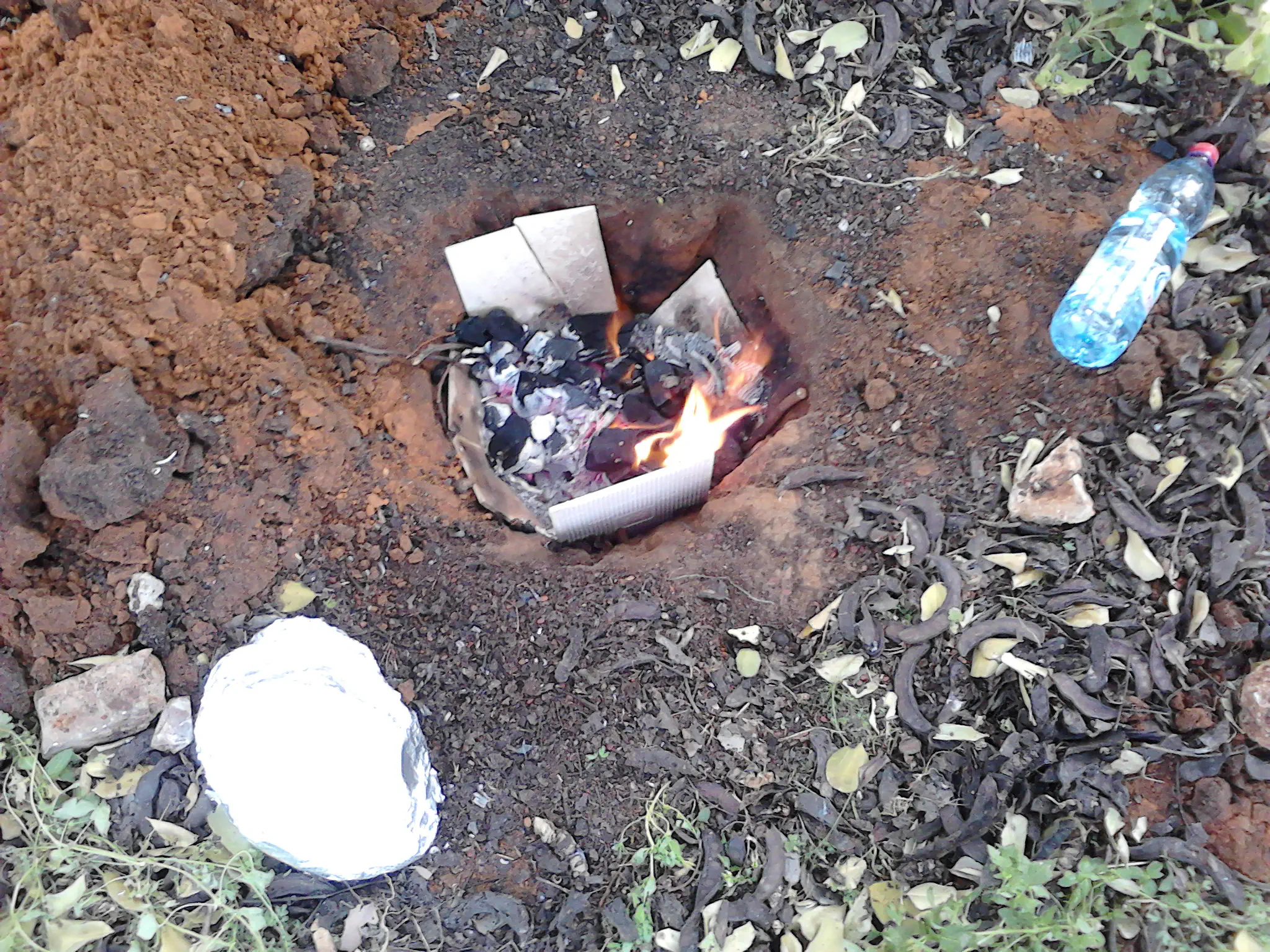 ממלאים גחלים, קרטונים, ענפים וכל מה שבוער היטב, ומבעירים..