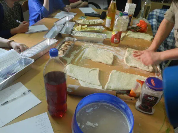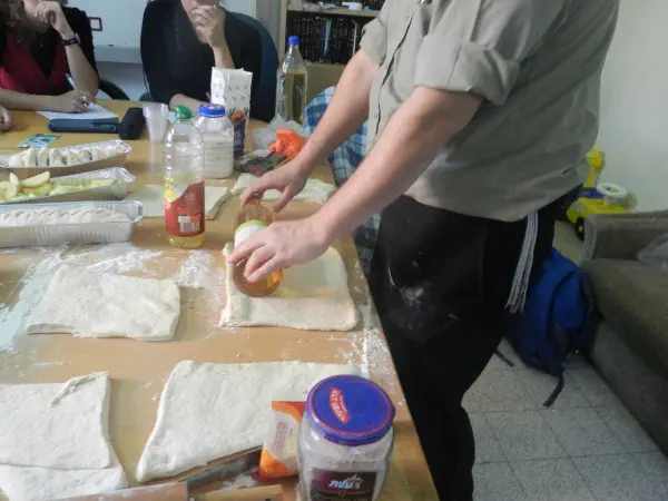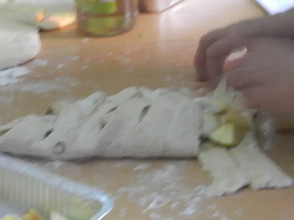 לשים את התערובת מעל התפוחים, לכסות בתנור על 180 מעלות, לפתוח אחרי איזה 20 דקות.