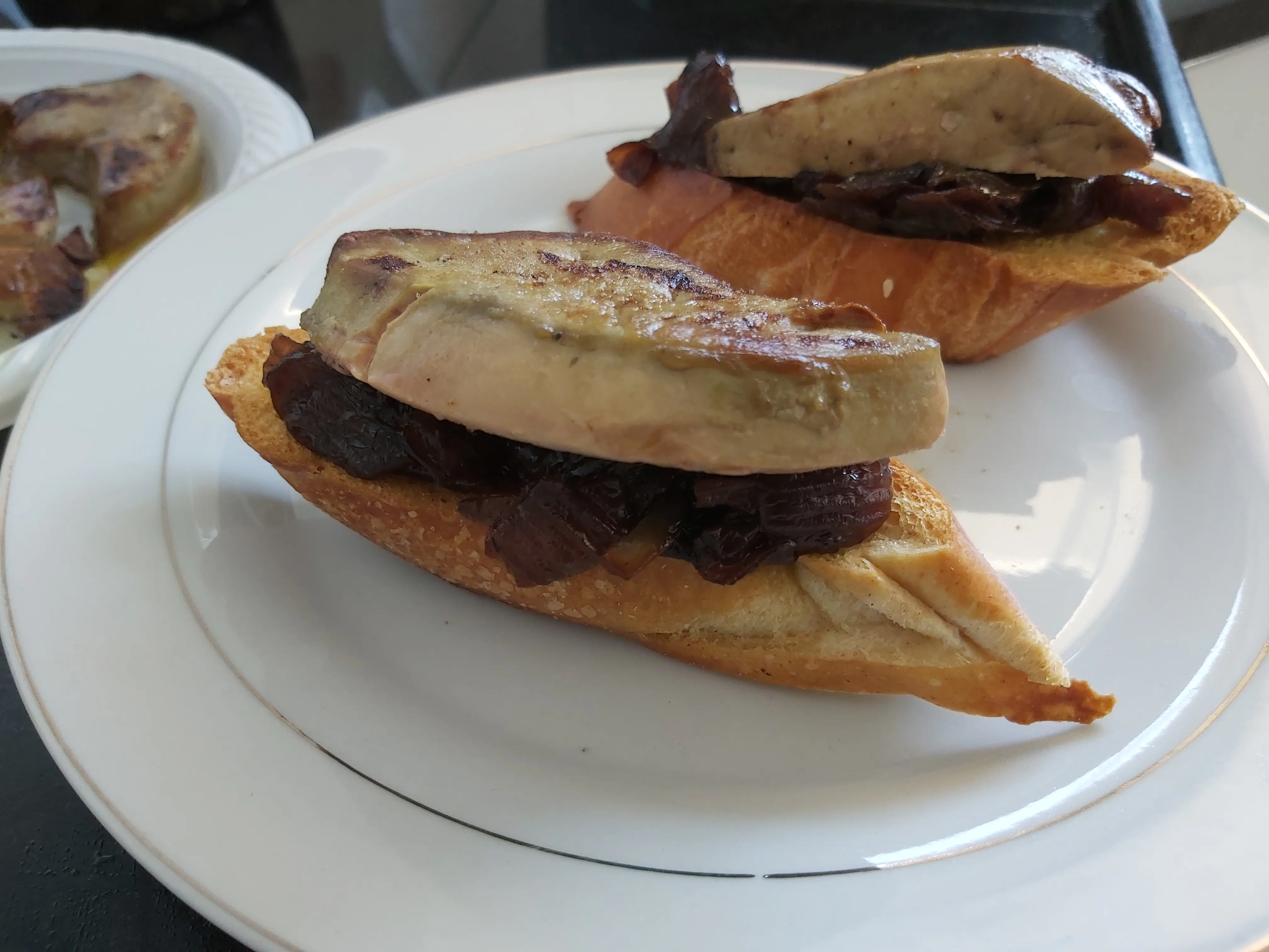 כבד אווז על ריבת בצל וטוסטוניםקראנץ שוקולד
