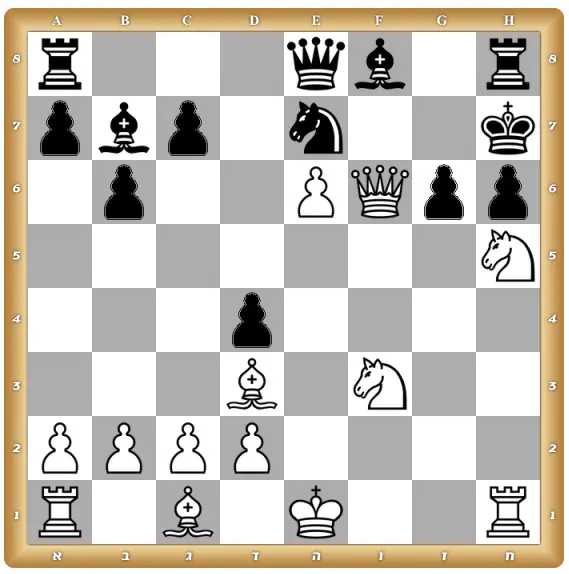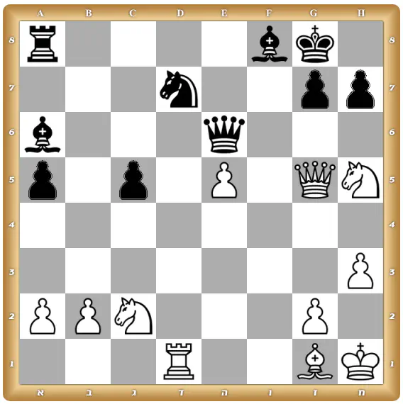 בלבן התשובה היא: 1.צ:ד7! מה:ד7 2.פו6+ (שח מלכה!, החייל לא יכול לאכול בגלל הריתוק מהמלכה...)