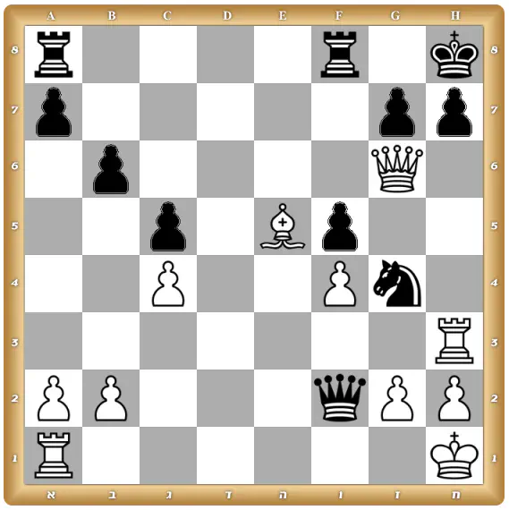בשחור התשובה היא: 1.מה:ח3!! ז:ח3(עם הוא מעלה את הרץ לח2 המלכה אוכלת את הרץ ומט...) 2.רב7+-...