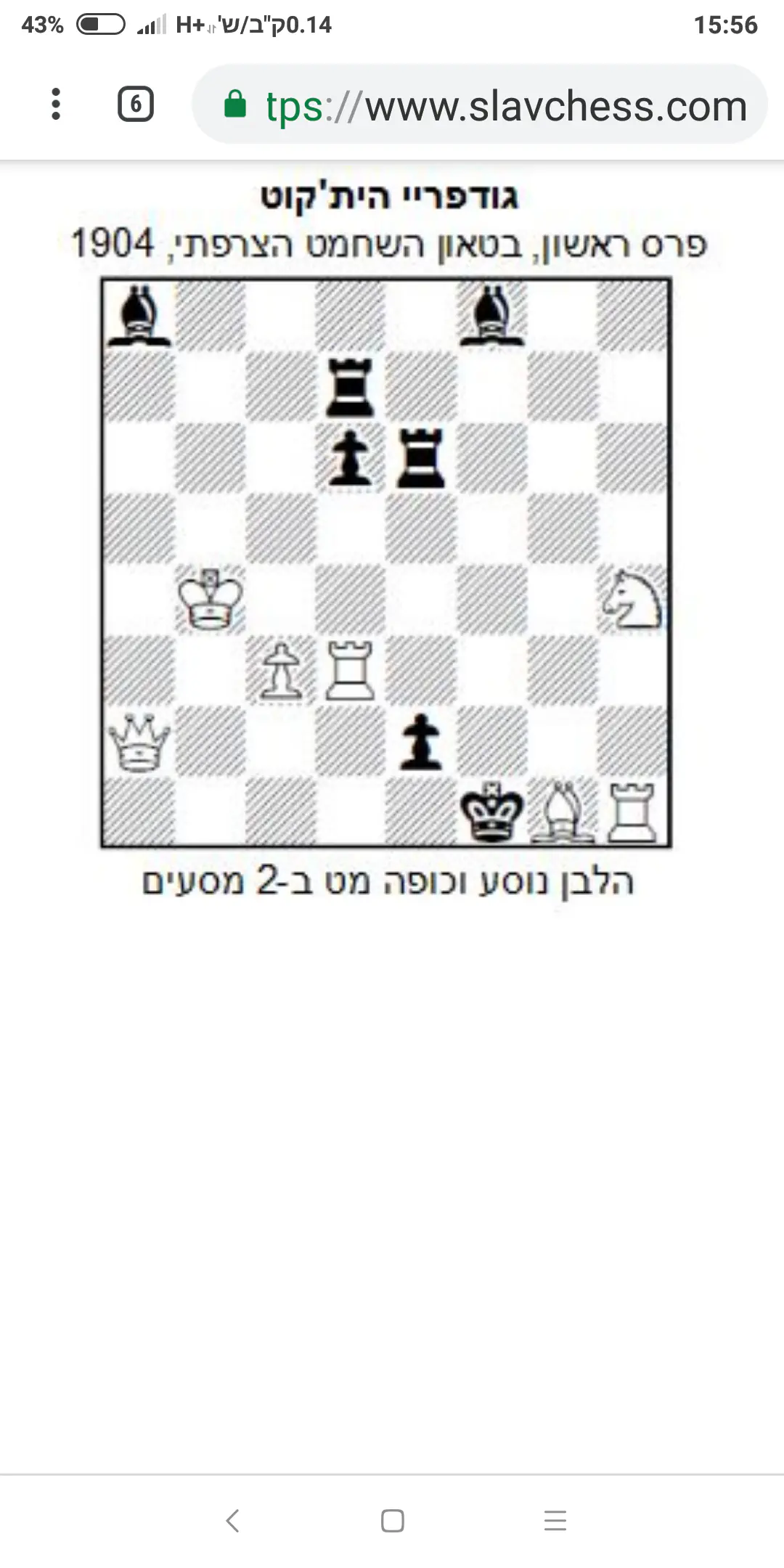 טיפה יותר מסובכת... הלבן מתחיל, המטרה היא מט בח מהלכים... בהצלחה!