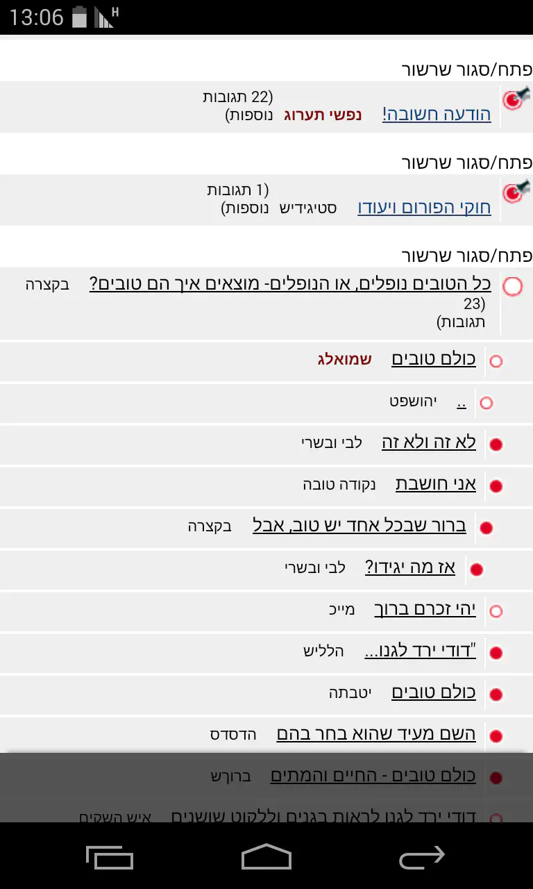 1. במסך עריכת מועדפים מופיעים גם פורומים לא סגורים שהוספו בעבר.