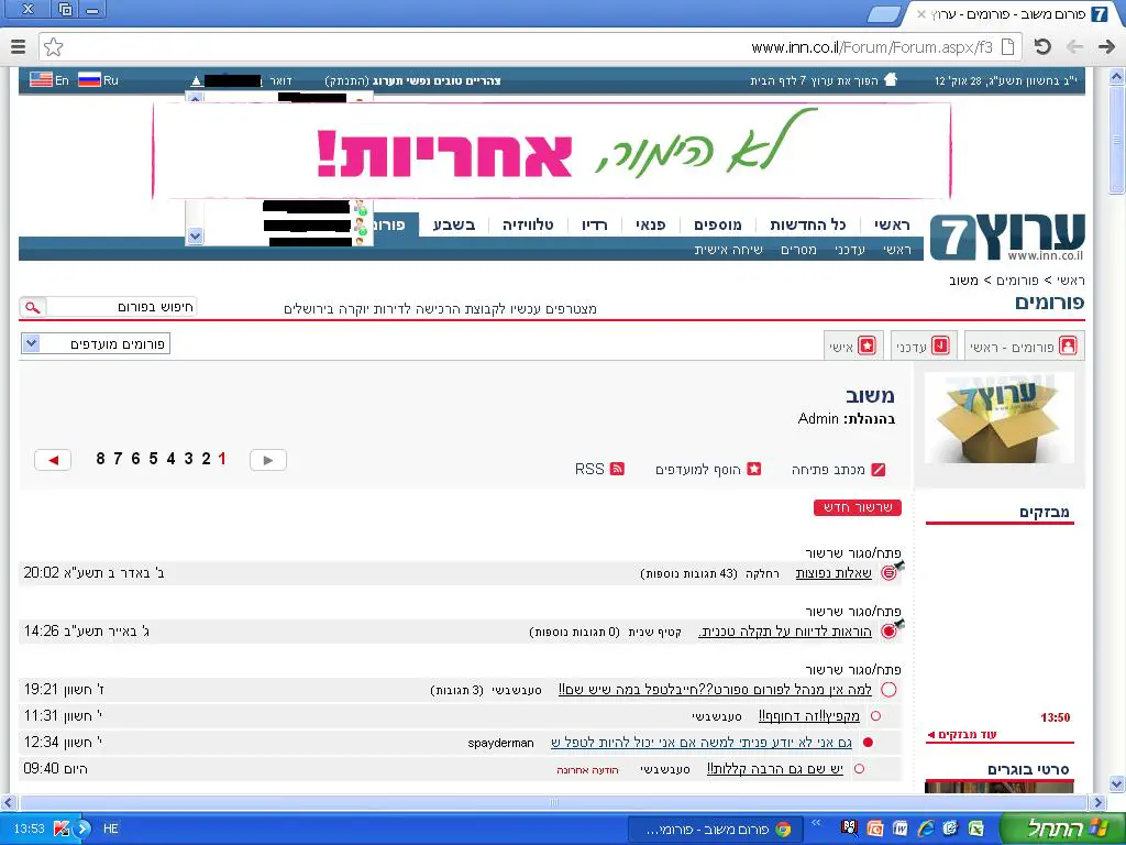 "יחי אדמינינו, מנהלנו וחוסמנו, מתכנת ערוץ 7 לעולם ועד!!!!"