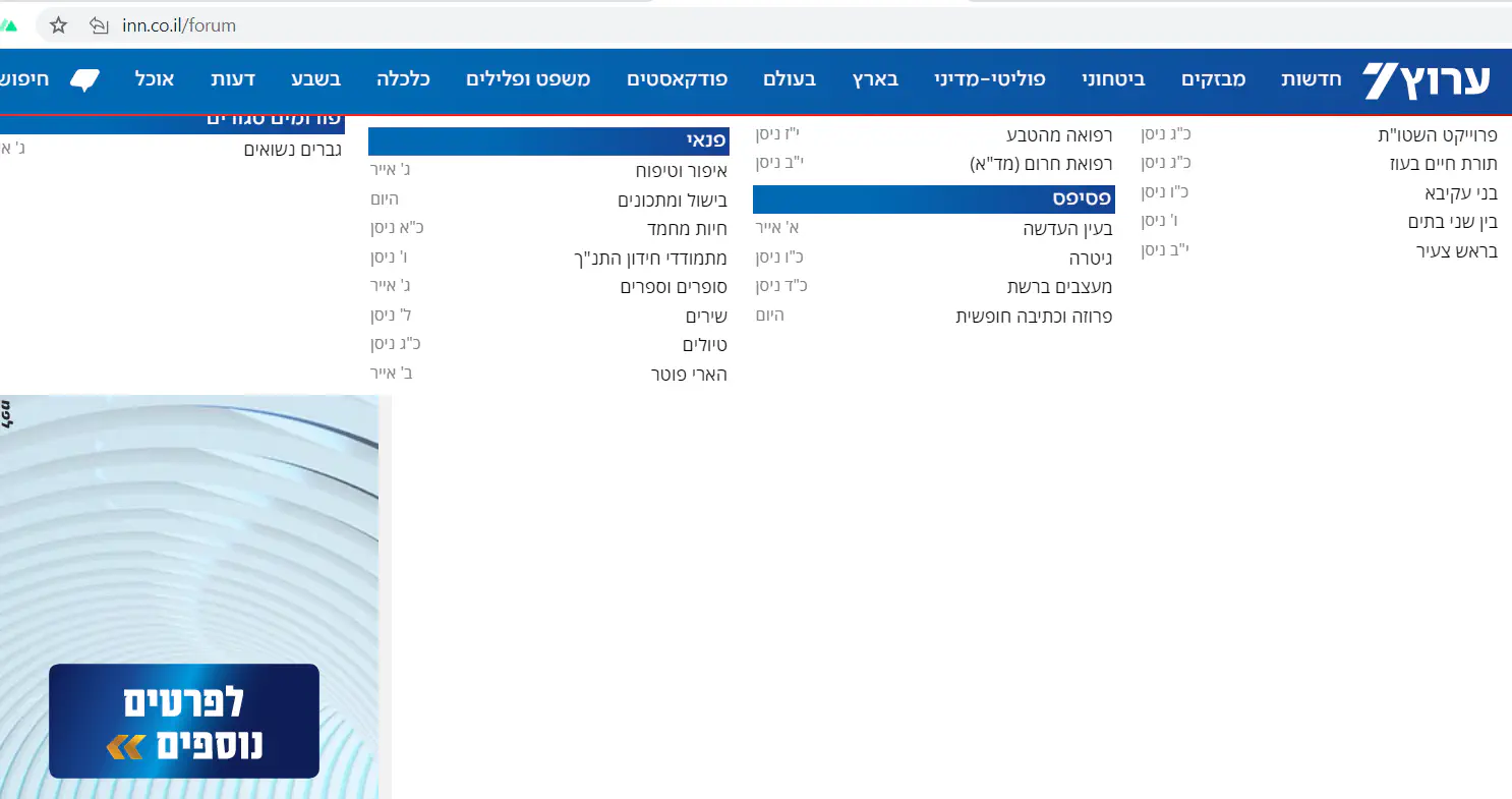 ב. הקישור פורום אקטואליה וחדשות | ערוץ 7 - מניב הודעה " פורום #177 לא נמצא." ועד"ז בפורומים אחרים.