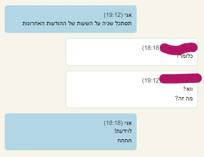 עם דגש על הציטוט הודעות בשיחה אישית.